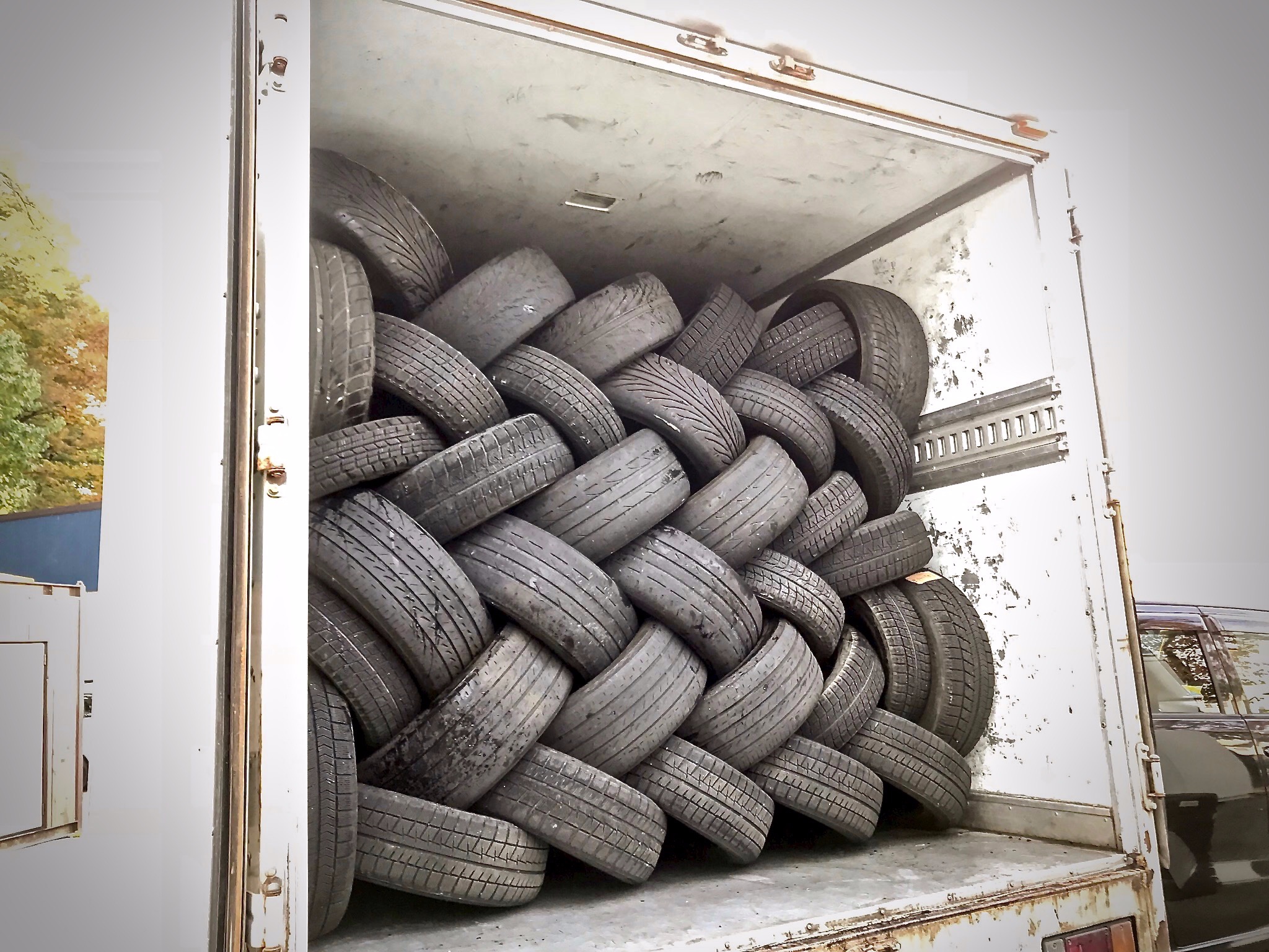 2018年11月12日 ツイート みなさまにタイヤをお買上げ頂き お役御免となった用済みタイヤは 廃棄物として専門業者さんに 回収してもらってるのですが。。。 業者さんの積み方が秀悦 Σ(゚Д゚) この互い違いが味噌なんですって。 荷崩れもしないしいっぱい積めるそうです。さすが❗ Prev Next