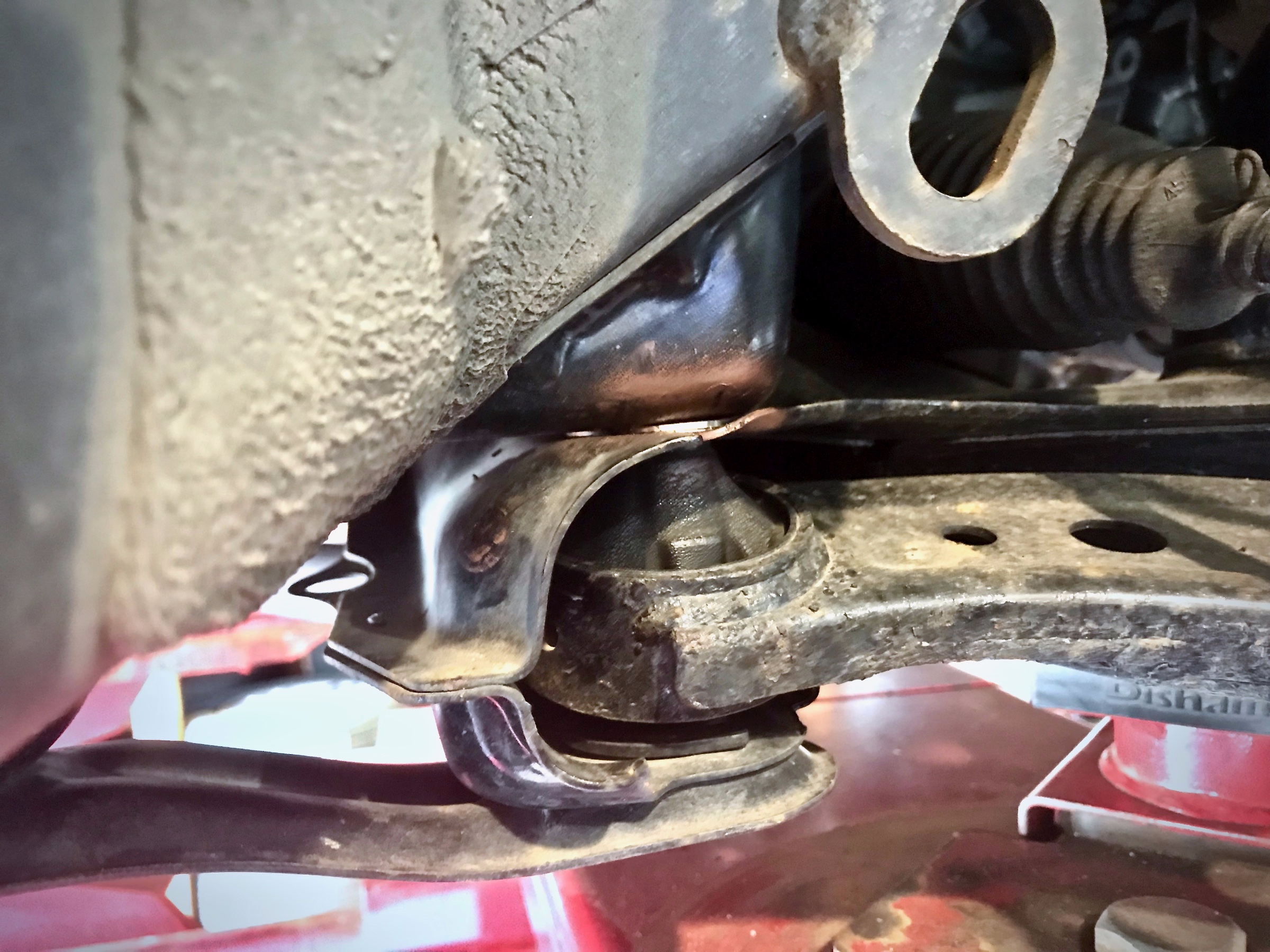 リヤはトレーディングアームの付け根のここ