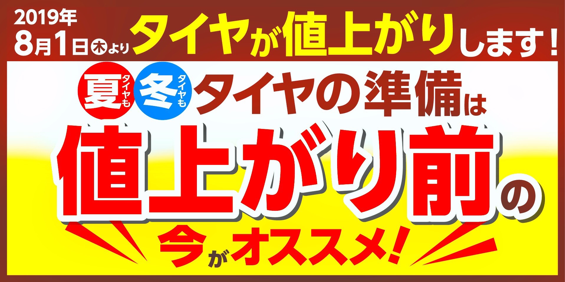 残念ながら来月8月1日より夏冬タイヤが値上がりします❗
