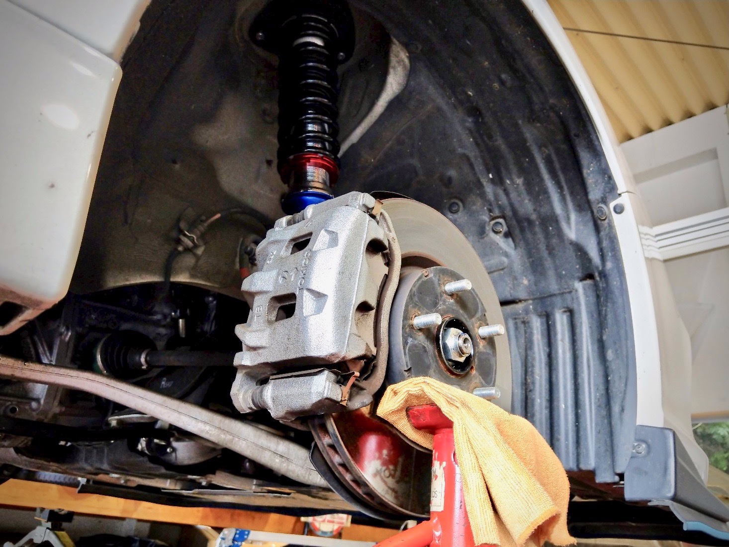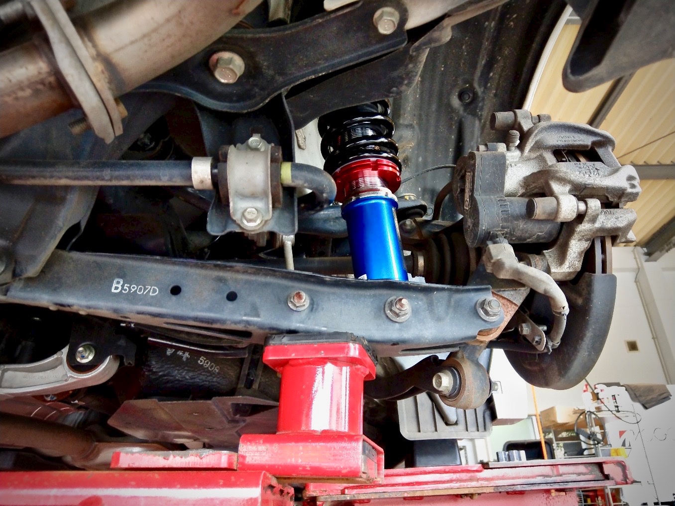 今お使いの車高調から異音がするとのことで点検・診断させて頂いたところ