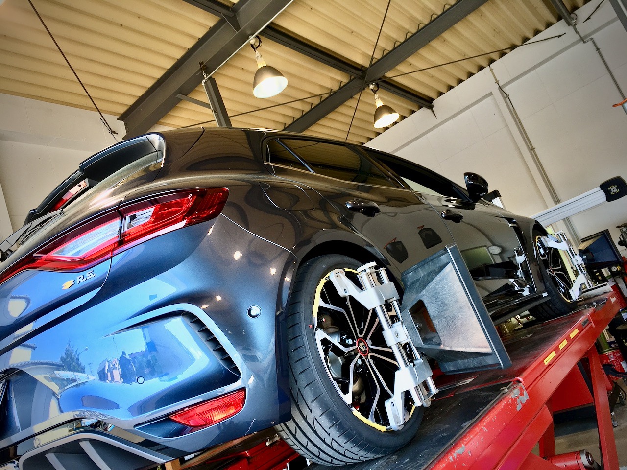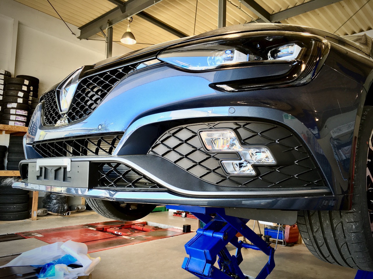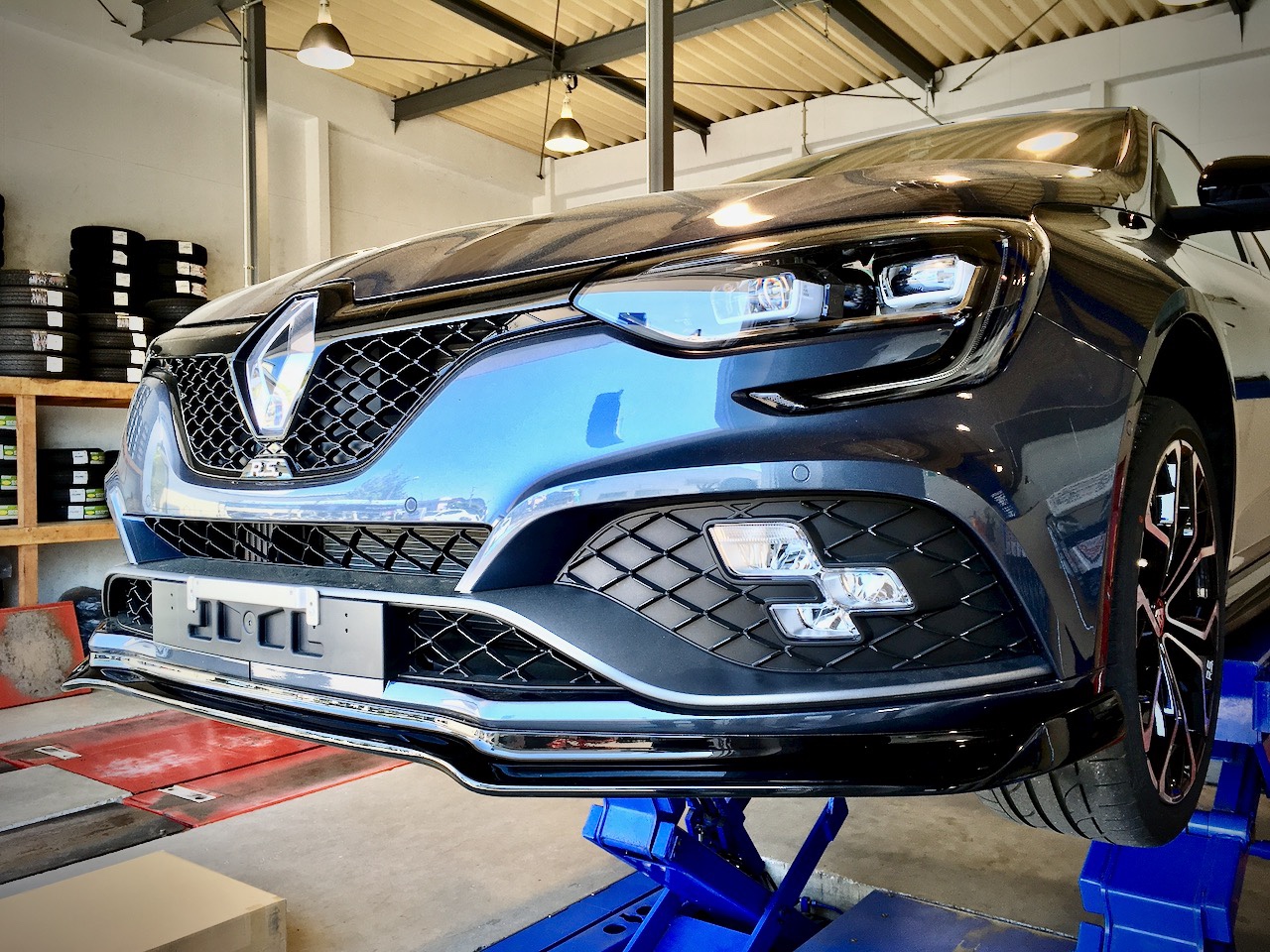 TさまのメガーヌⅣ RSにスポイラー取付です。