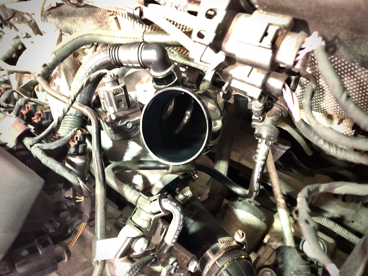 ブラックアルマイト製のファンネル状になっていてブーストのレスポンスが向上。