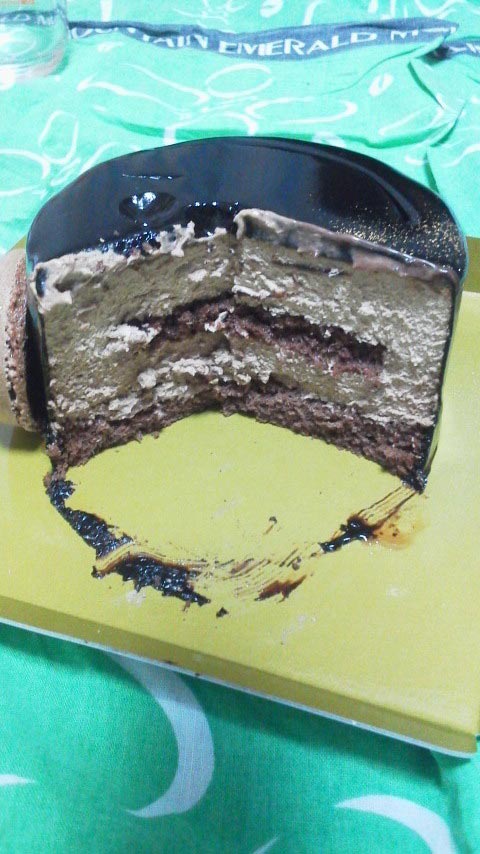 周りはチョコレートソースでコーティングさてれおり、