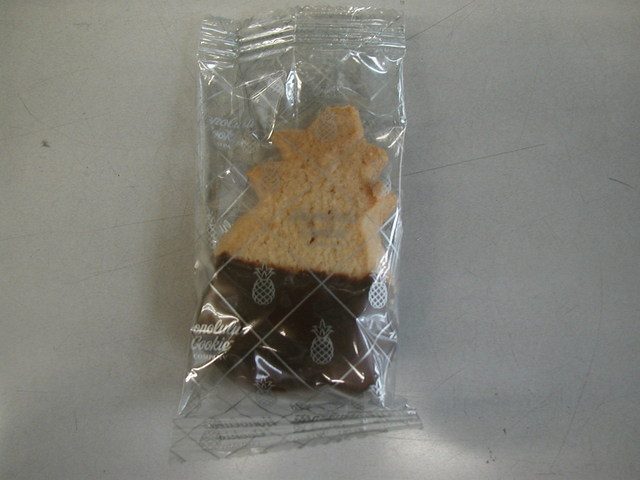 チョコレートのかかったクッキーです。