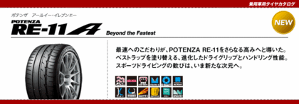 2012年7月16日 POTENZAのラジアルモータースポーツタイヤ「POTENZA RE-11」が新化した「POTENZA RE-11A」が満を持して登場致しました。トレッドパターンは従来の「POTENZA RE-11」と同じですが、構造や性能はより進化し、ドライ&ウェット路面での性能向上を実現致しました。詳細はブリヂストンHPを御覧下さい。当店にも展示しておりますの是非御覧下さい。皆様の御来店をお待ちしております。また、電話又はメールにての御問い合わせもお待ちしております。 クリックで画像を拡大 関連情報リンク http://www.bridgestone.co.jp/personal/tire/potenza/re_11a/index.html Prev Next