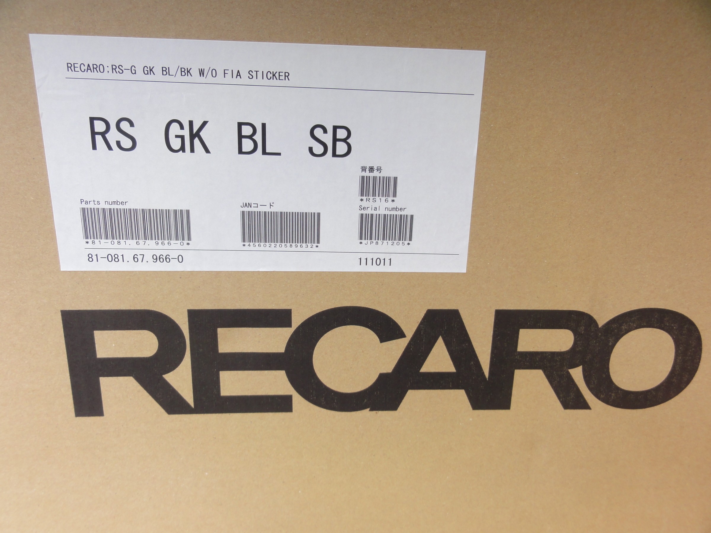 レカロ製のモータースポーツシェルシート(フルバケットシート)