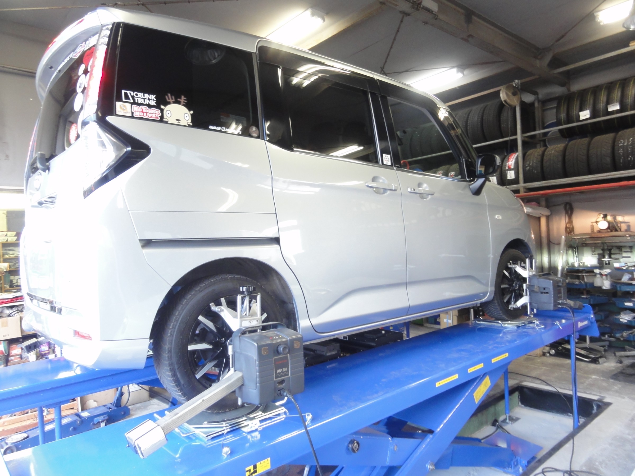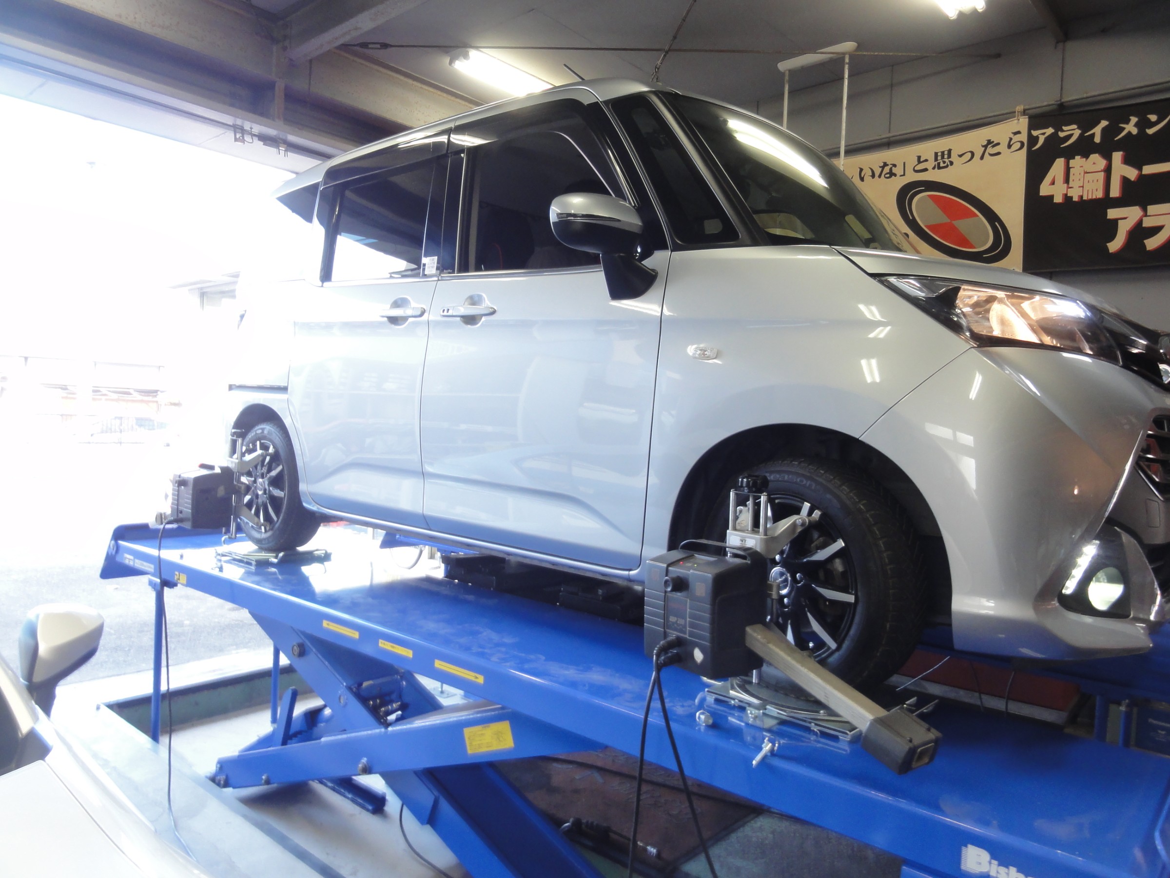 2023年7月28日 ツイート 当店のJAF加盟クラブのクラブ員の トヨタ タンク(M900A)の アライメント測定&調整作業を行いました。 この車の標準アライメント調整箇所は フロントのトーのみの調整となります。 いつも御利用・御来店ありがとうございます。 またのお越しをお待ちしております。 Prev Next