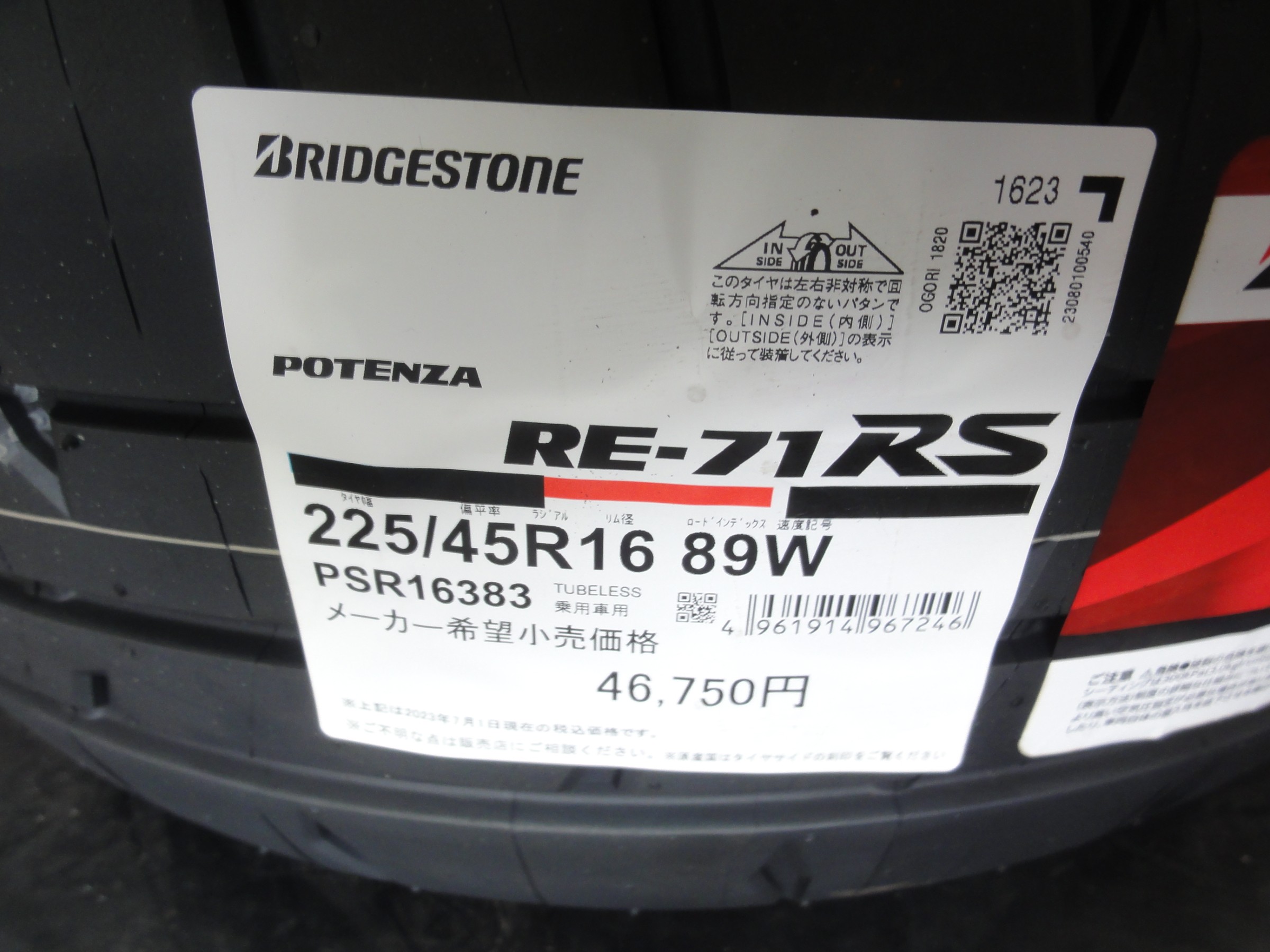「ポテンザ RE-71RS」へと交換作業を行いました。