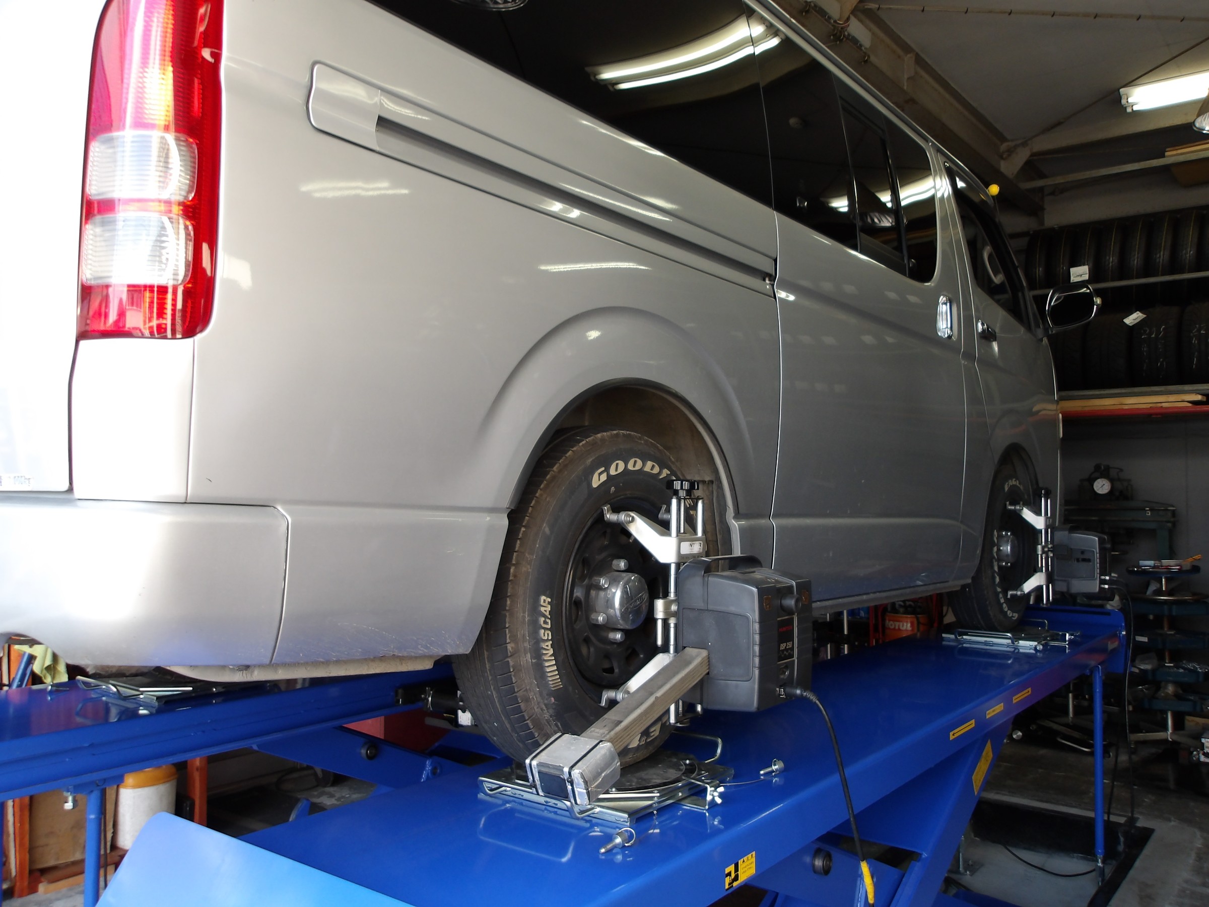 2023年9月12日 ツイート 新規で御来店して頂きました トヨタ ハイエース(KDH201V)の アライメント測定&調整作業を行いました。 この車の標準アライメント調整箇所は フロントのキャスターとフロントのキャンバー、 フロントのトーの調整となります。 御利用・御来店ありがとうございます。 今後とも宜しく御願い致します。 Prev Next