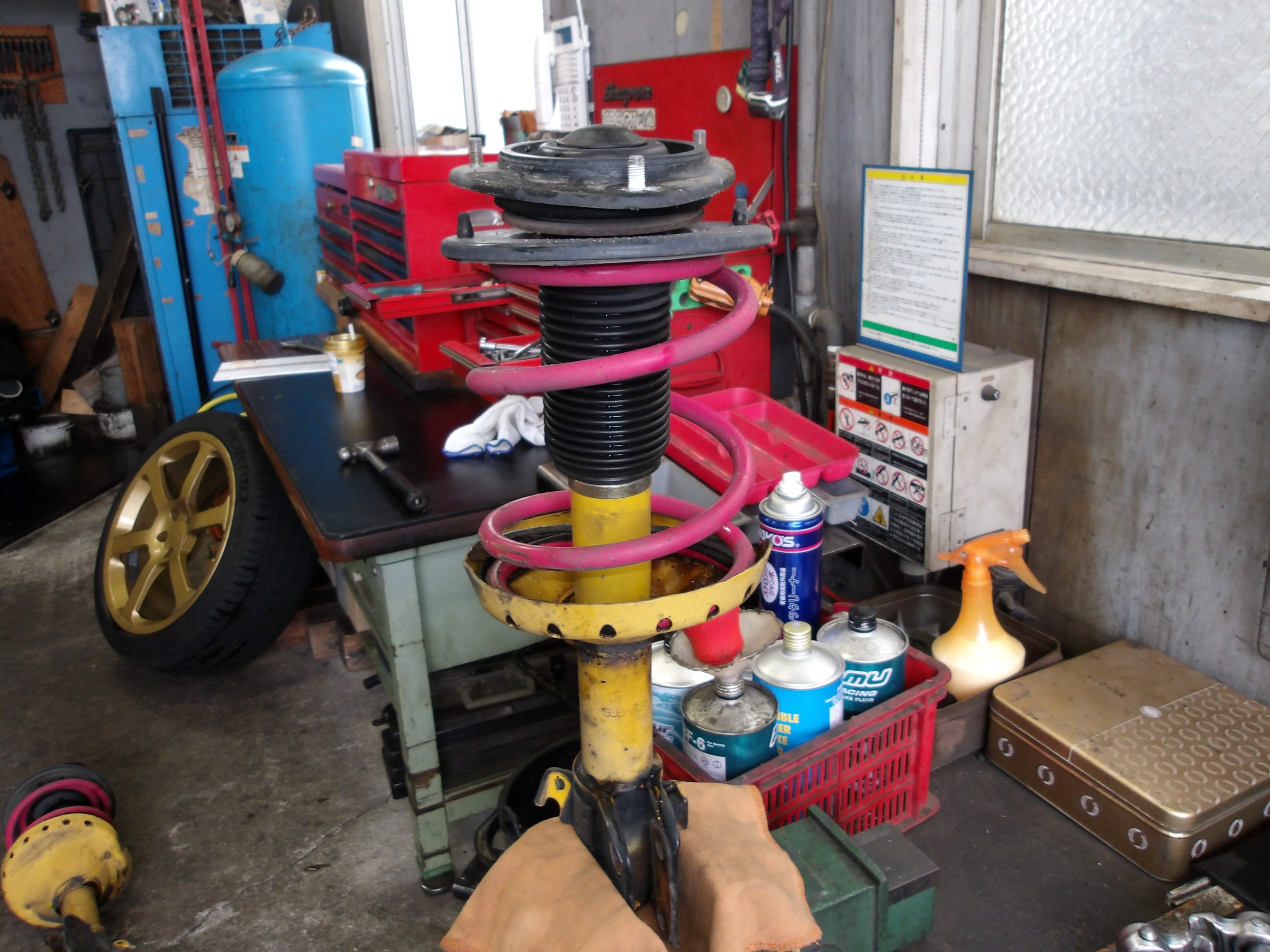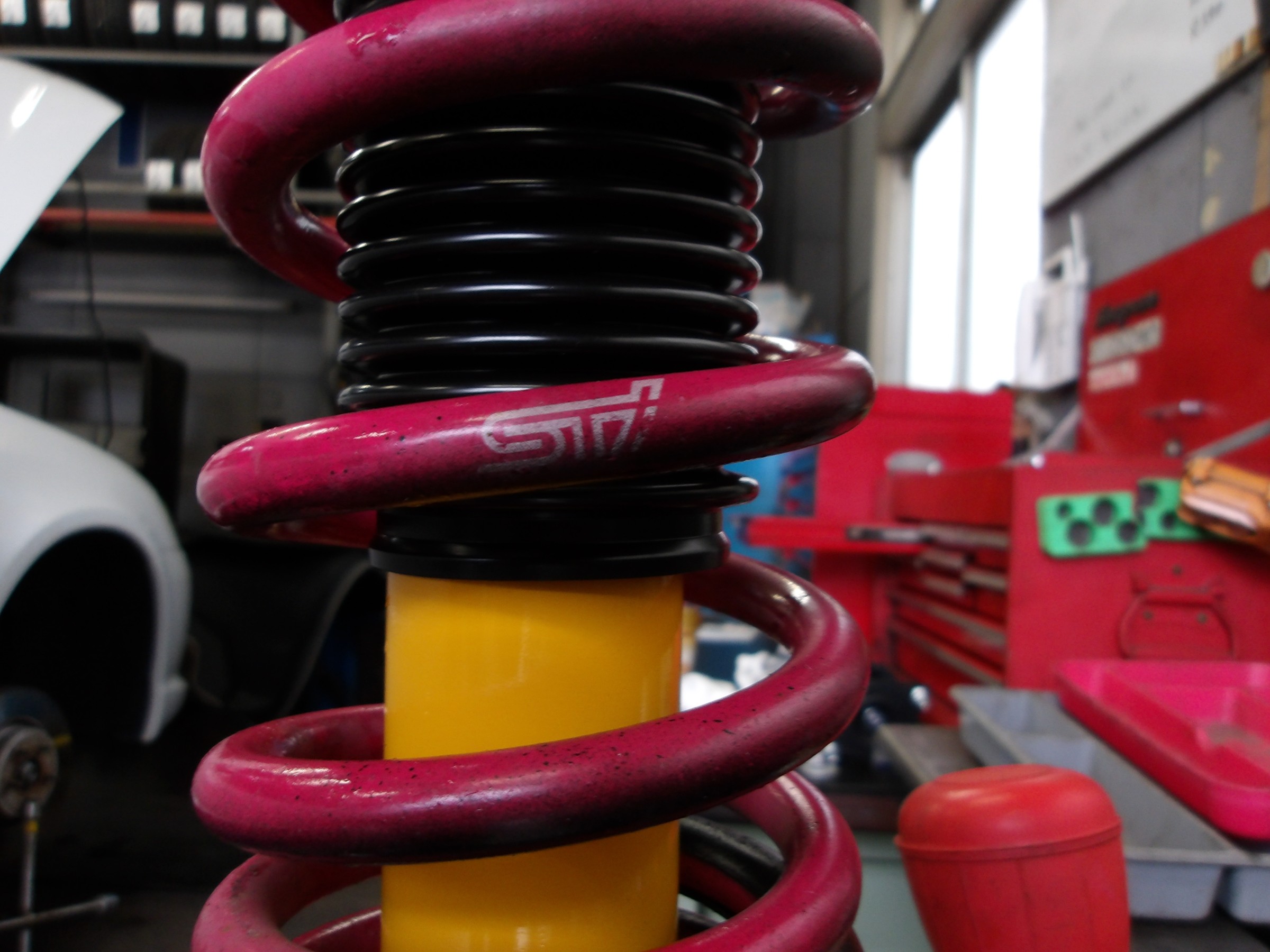 現在装着されておりますSTIのスプリングを用いて装着致しました。