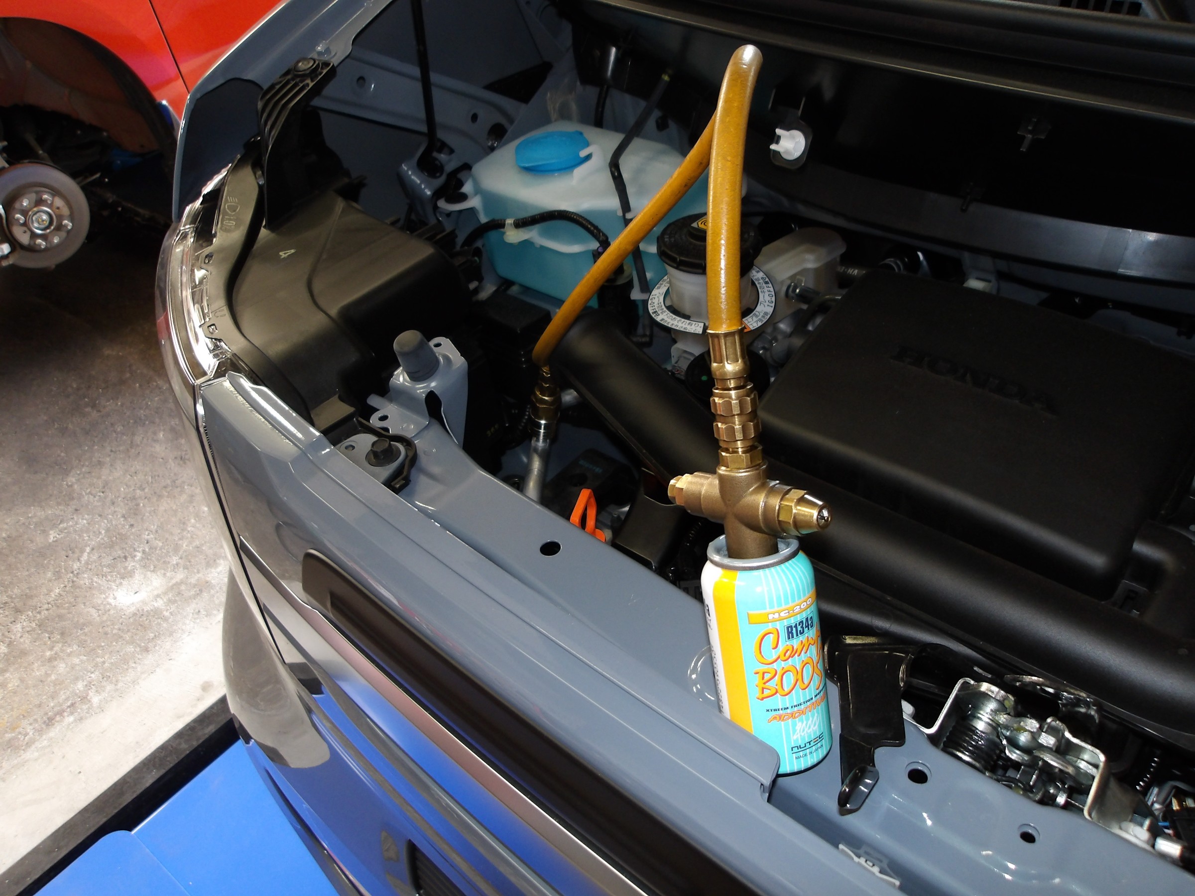 エアコンの添加剤の注入作業を行いました。