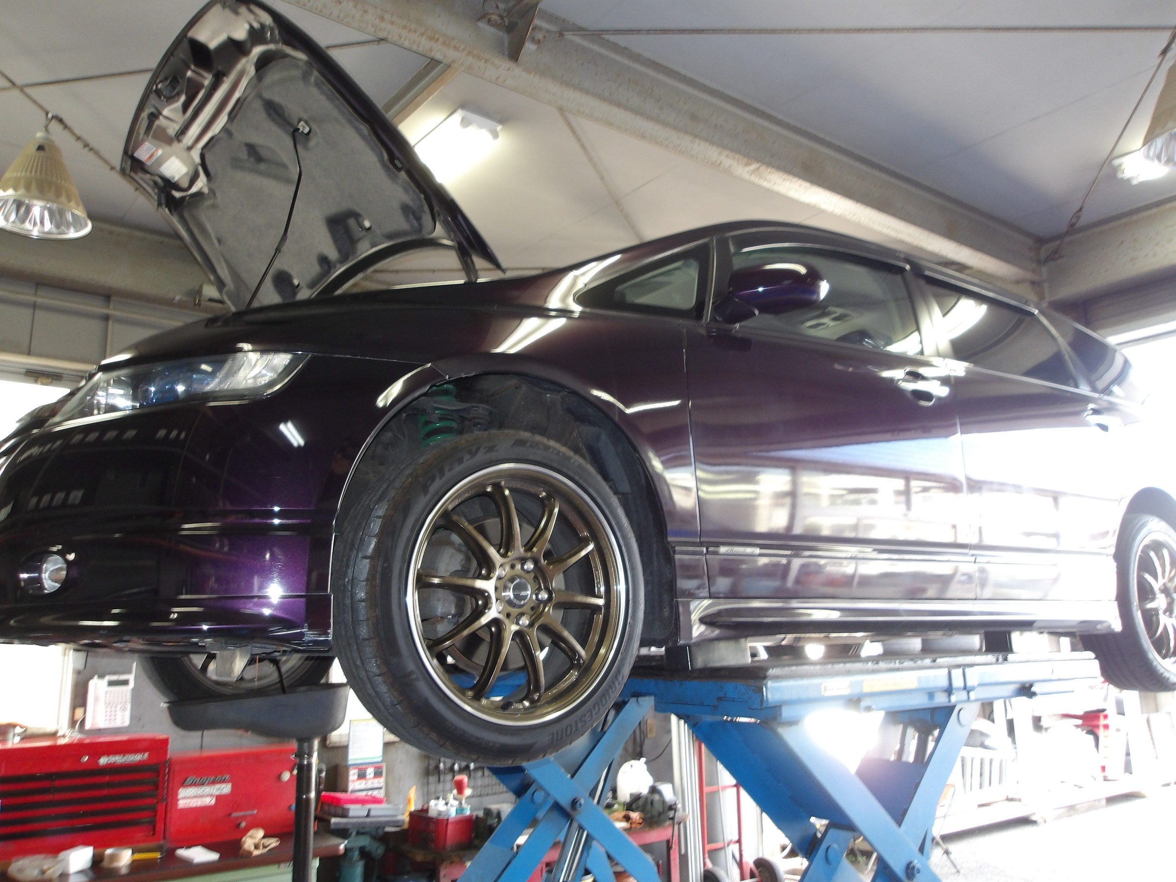 エンジンオイルとオイルフィルターの交換作業を行い