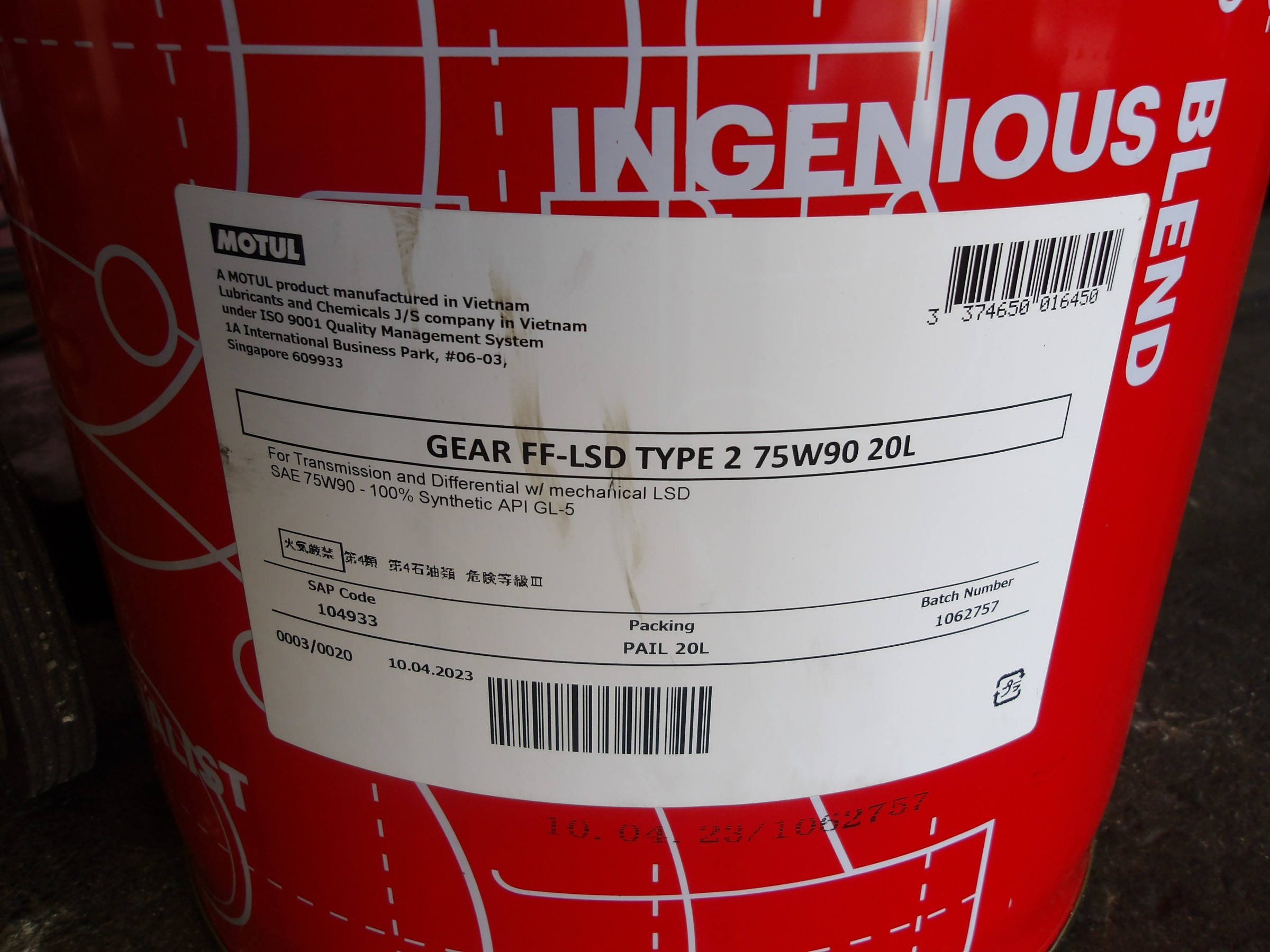 モチュール FF-LSD TYPE2 75W90を使用致しました。