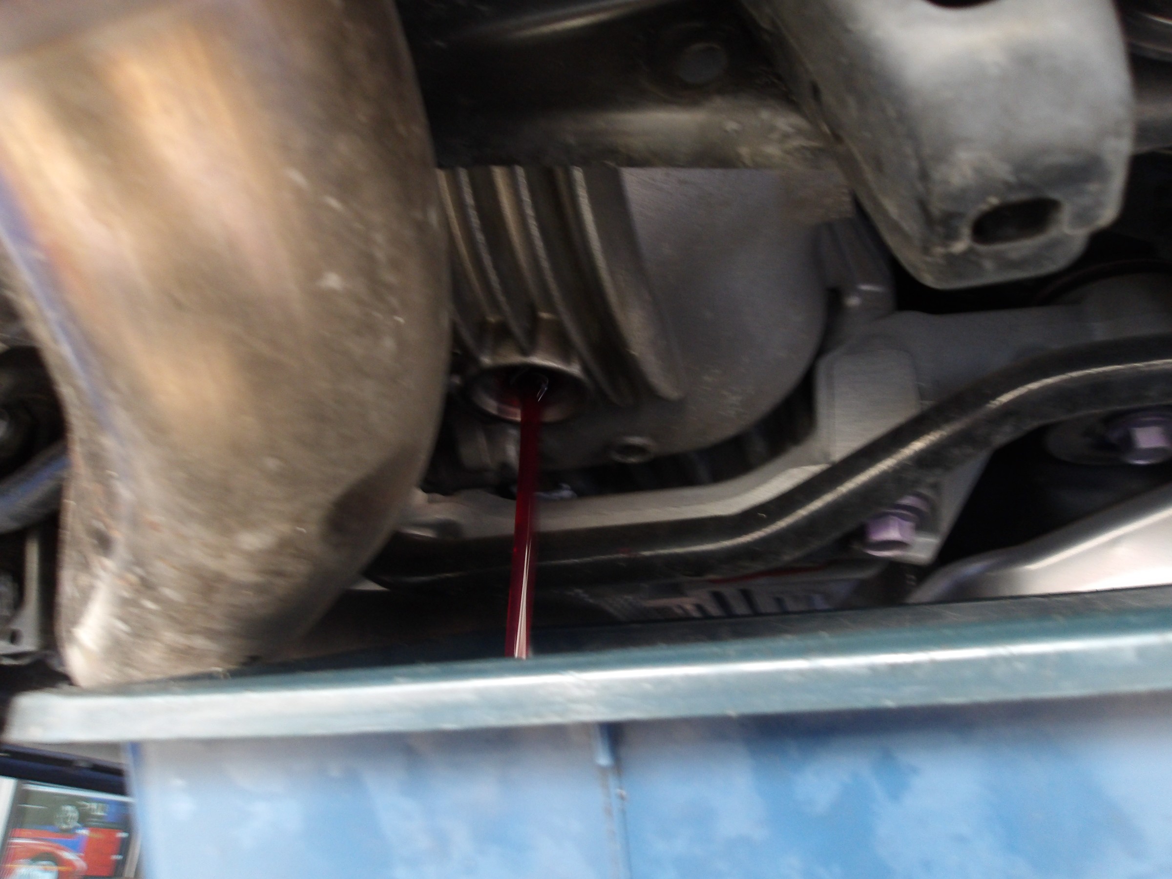 トランスファーオイルとリヤデフオイルの交換作業を行いました。