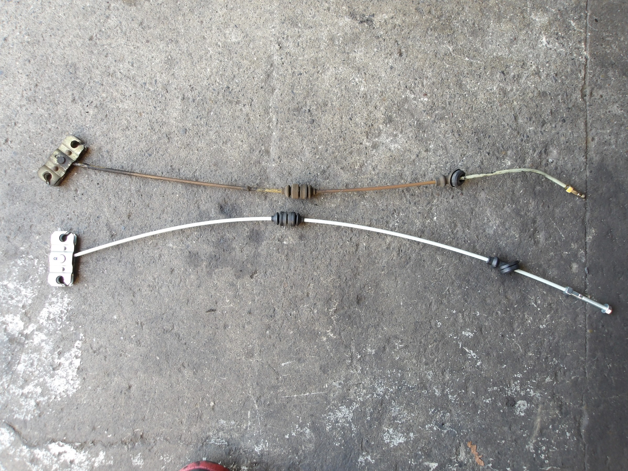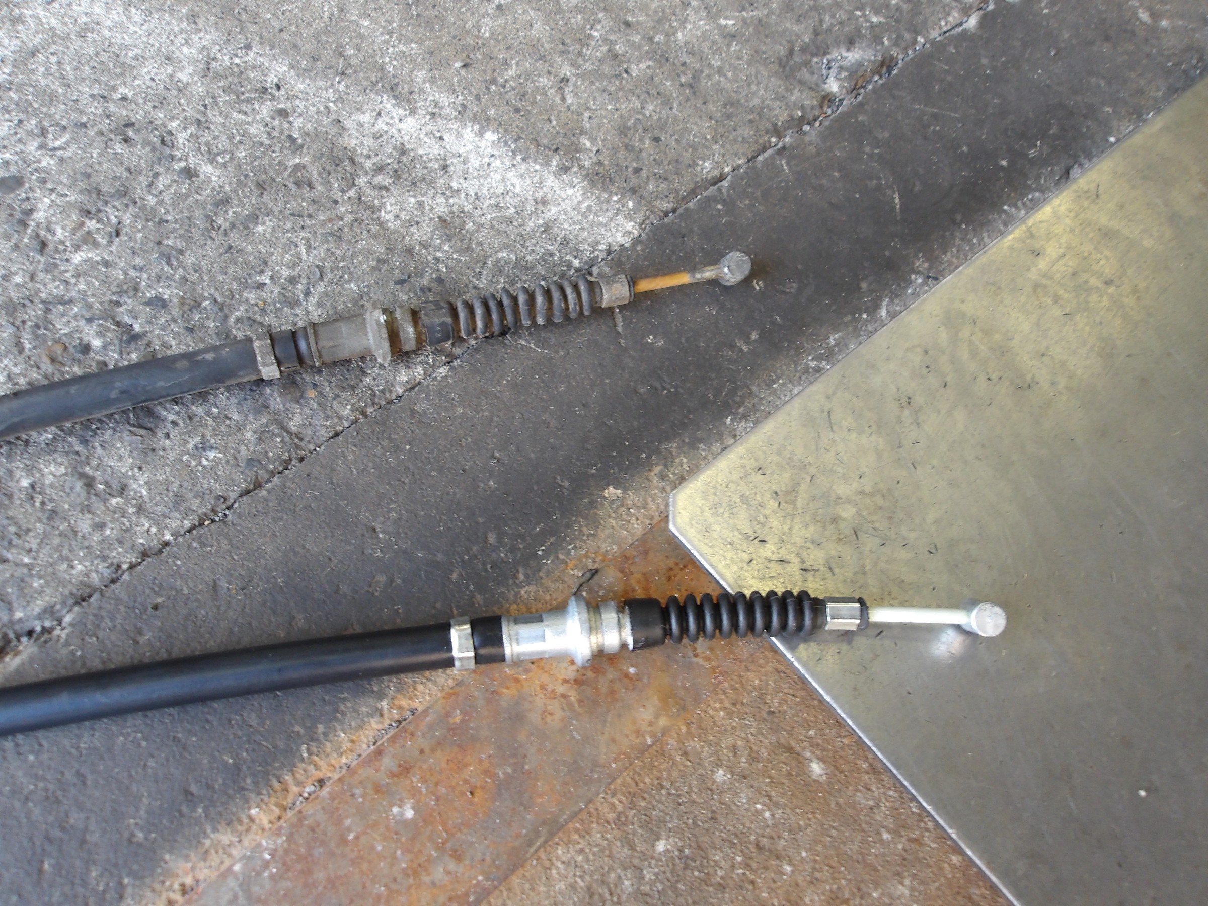 サイドブレーキのワイヤーのフロント側とリヤ側(ブレーキキャリパー側)の左右の