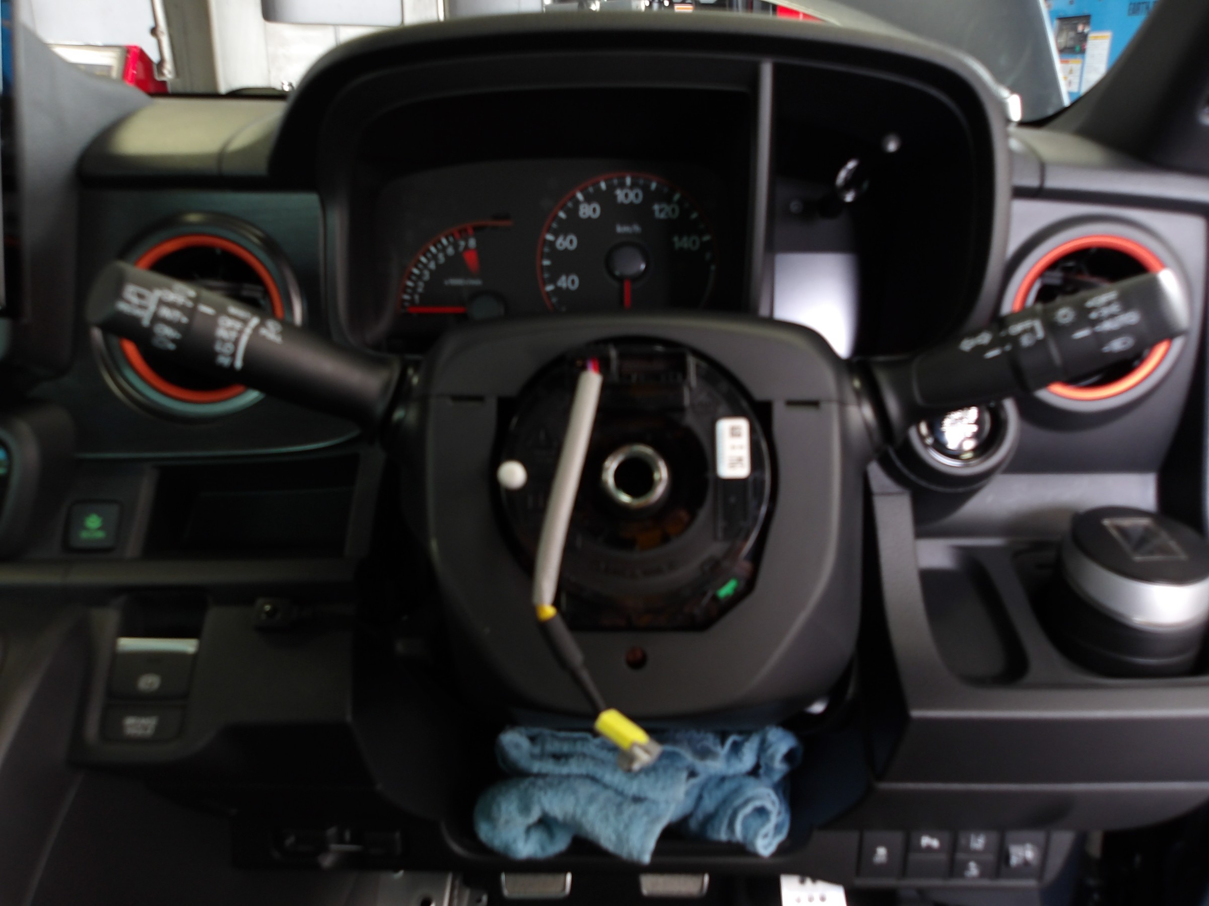 純正のステアリングを手前に伸ばす事のできる