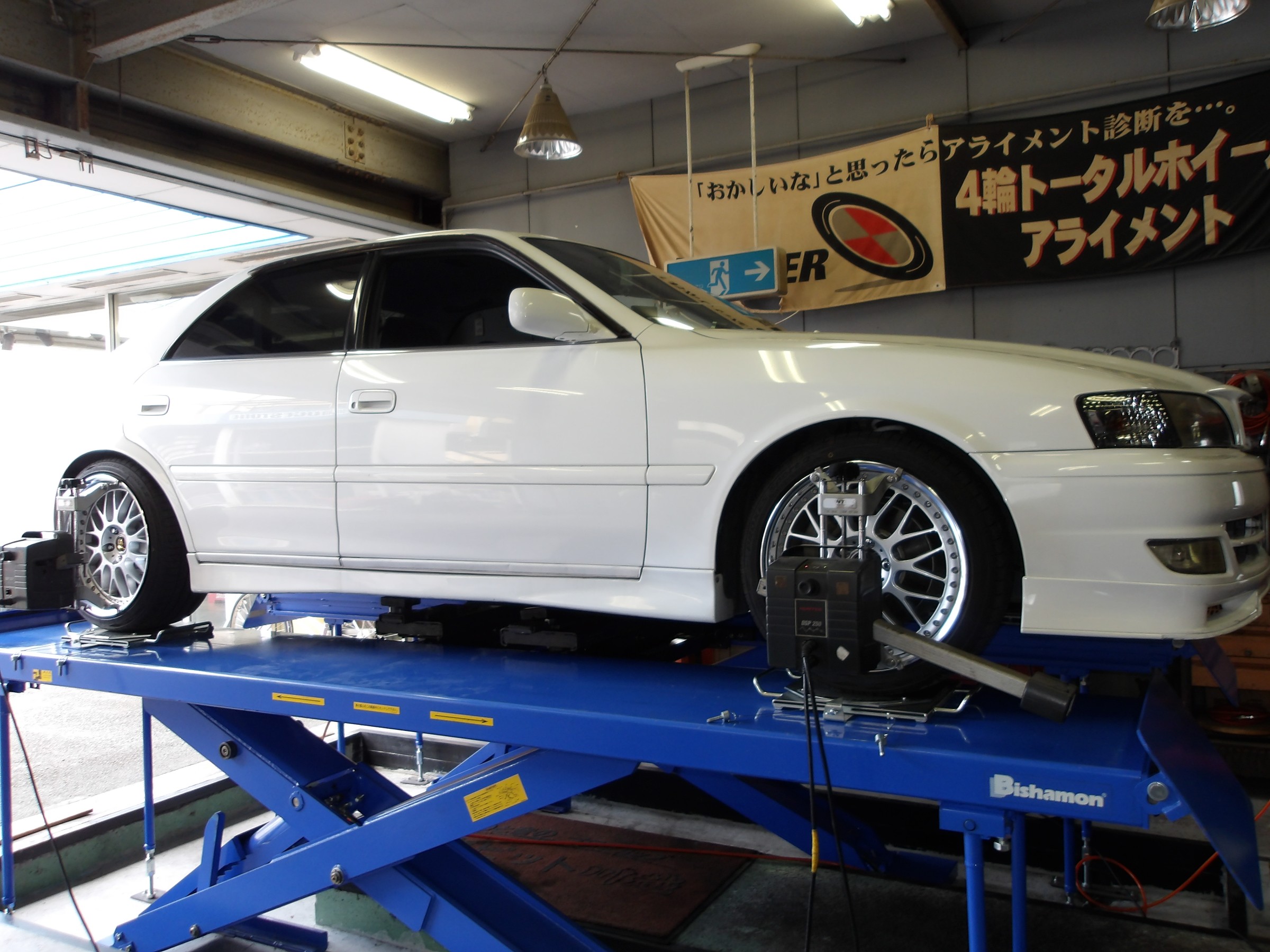 2024年6月29日 ツイート 新規で御来店して頂きました トヨタ チェイサー(JZX100:ツアラーV)の アライメント測定&調整作業を行いました。 この車の標準アライメント調整箇所は 前後のキャンバーと前後のトーの調整となります。 御利用・御来店ありがとうございます。 今後とも宜しく御願い致します。 Prev Next