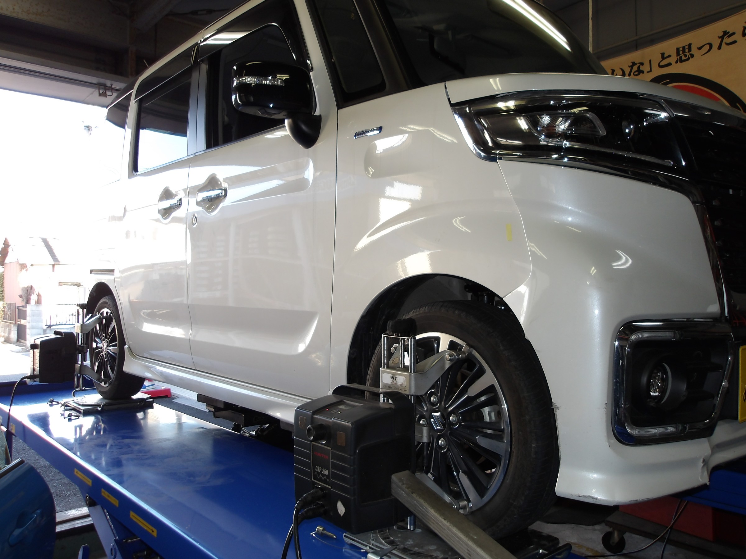 2024年11月8日 ツイート 自動車鈑金工場様からの御依頼により スズキ スペーシア カスタム(MK53S)の アライメント測定&調整作業を行いました。 この車の標準アライメント調整箇所は フロントのトーのみの調整となります。 いつも御利用ありがとうございます。 またの御利用をお待ちしております。 Prev Next