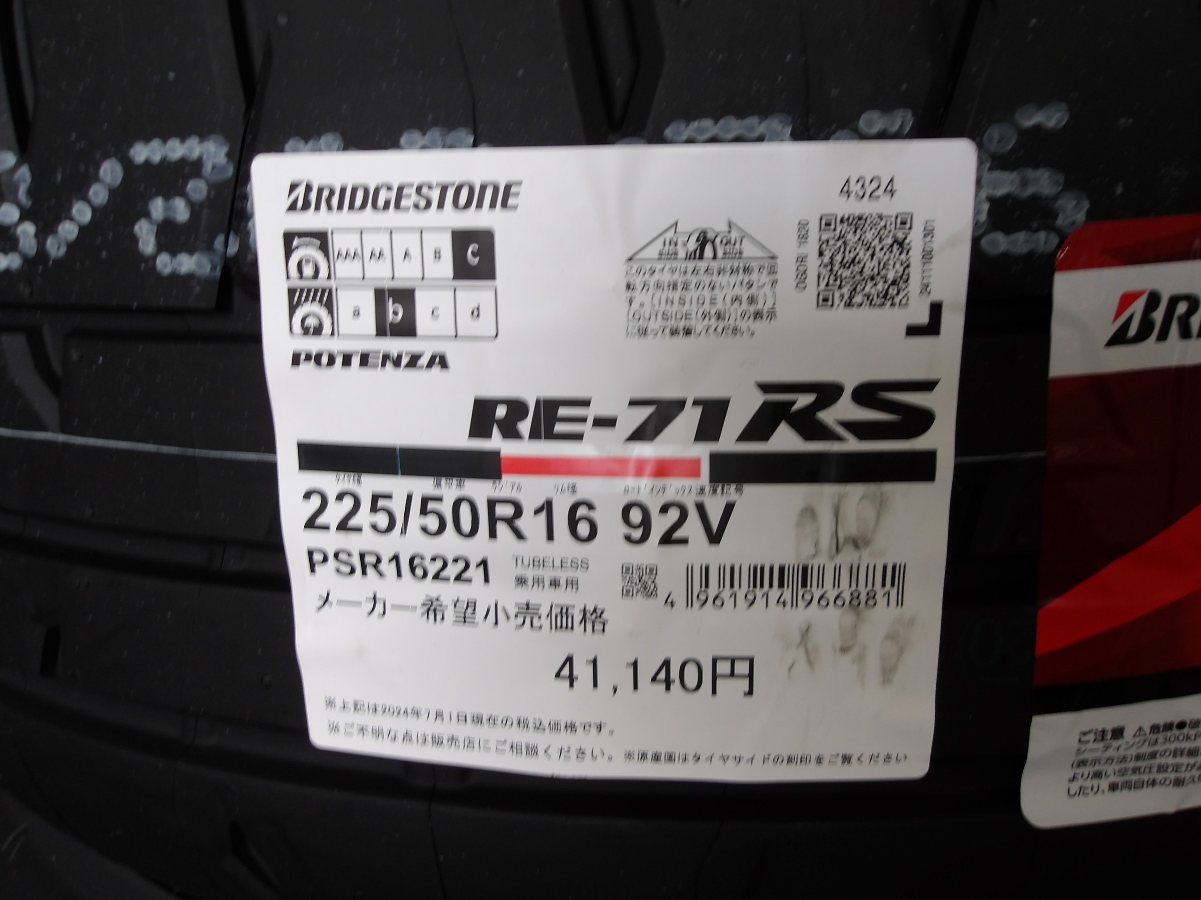 「ポテンザ REー71RS」を装着致しました。