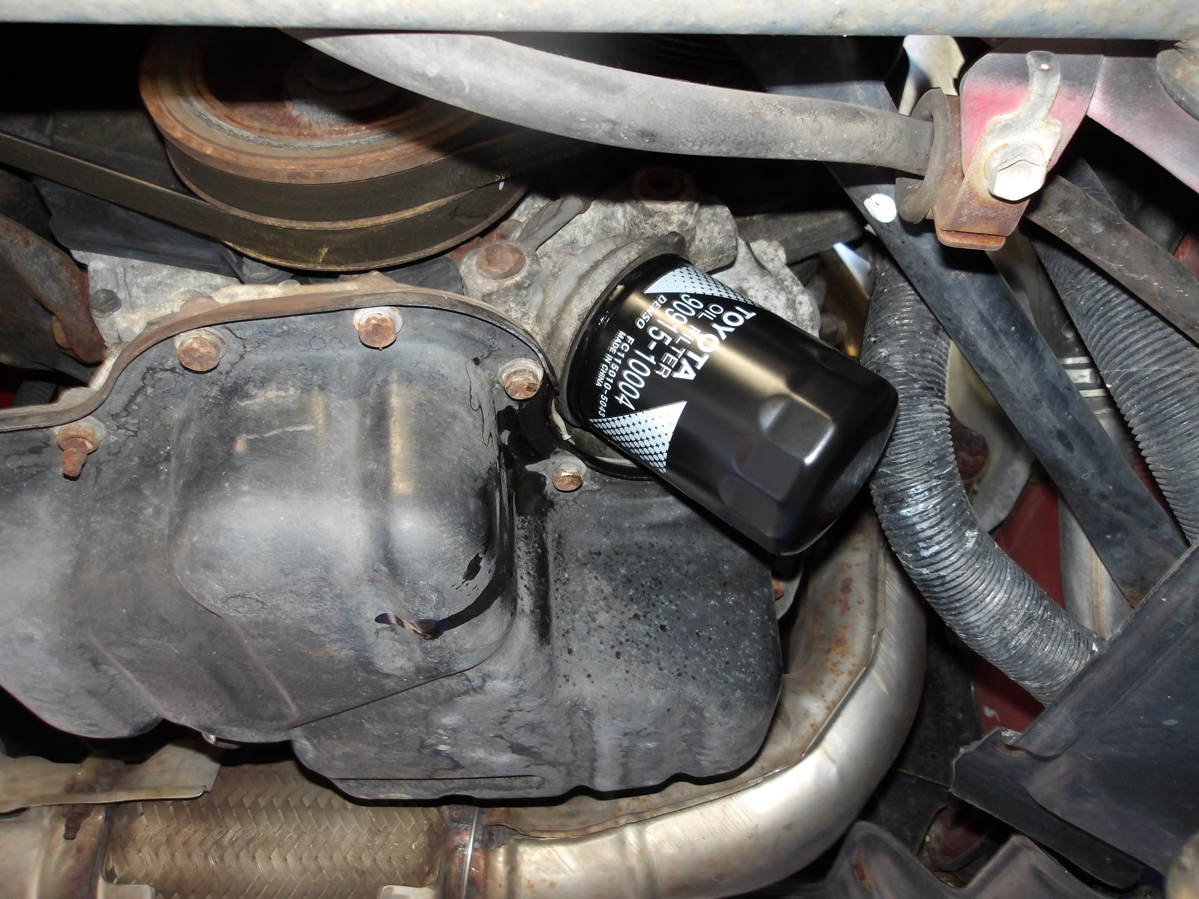 エンジンオイル&オイルフィルターの交換作業を行い、