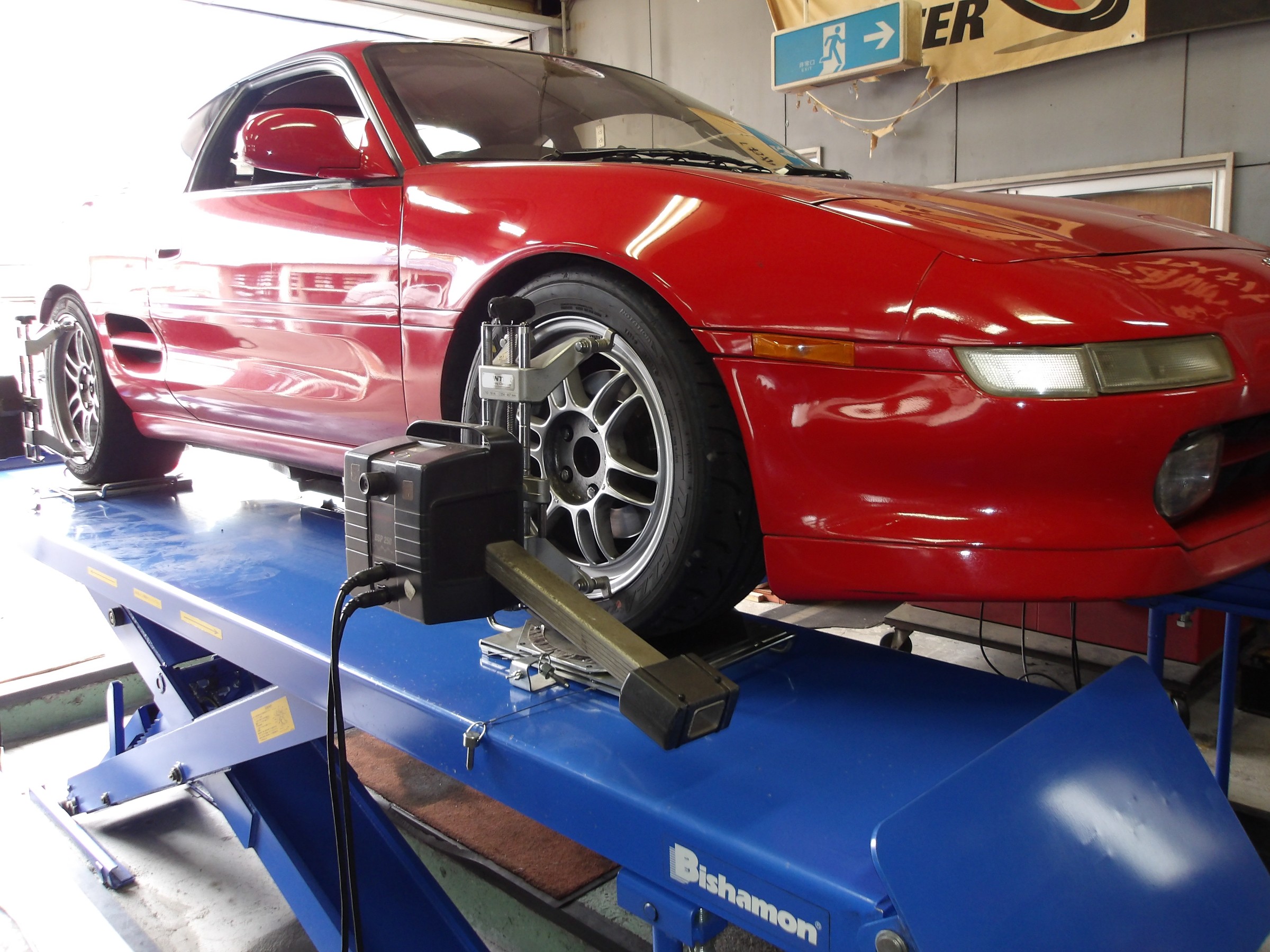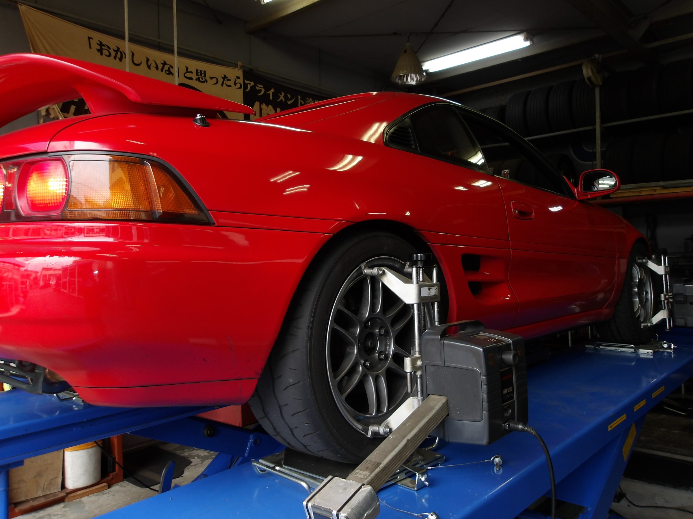2025年1月19日 ツイート いつも茨城県牛久市から御来店して頂いております トヨタ MR2(SW20:ターボ)の アライメント測定&調整作業を行いました。 この車の標準アライメント調整箇所は 前後のトーの調整となりますが この車両のフロントのテンションロッドが 調整式に変更されていたため フロントのキャスターも追加で調整出来ました。 Prev Next