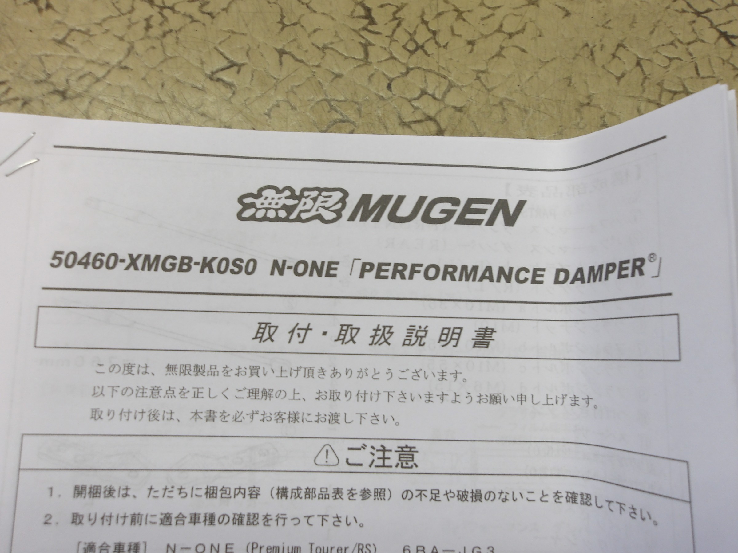2025年2月24日 ツイート ホンダ NーONE(JG3:RS)に 無限製の「パフォーマンスダンパー」を 前後に装着致しました。 ※リヤへの装着の際はリヤバンバーの脱着が必要となります。 Prev Next