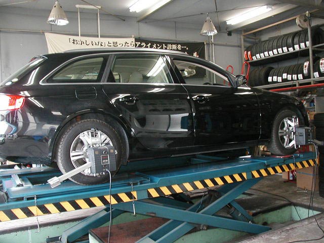 2013年5月16日 ツイート 自動車板金工場様からの御依頼により、アウディA4ワゴン(クワトロ) のアライメント測定&調整作業を行いました。この車の標準アライメント調整箇所は前後のトーとリヤキャンバーが調整できます。いつも御利用ありがとうございます。またの御利用をお待ちしております。 Prev Next