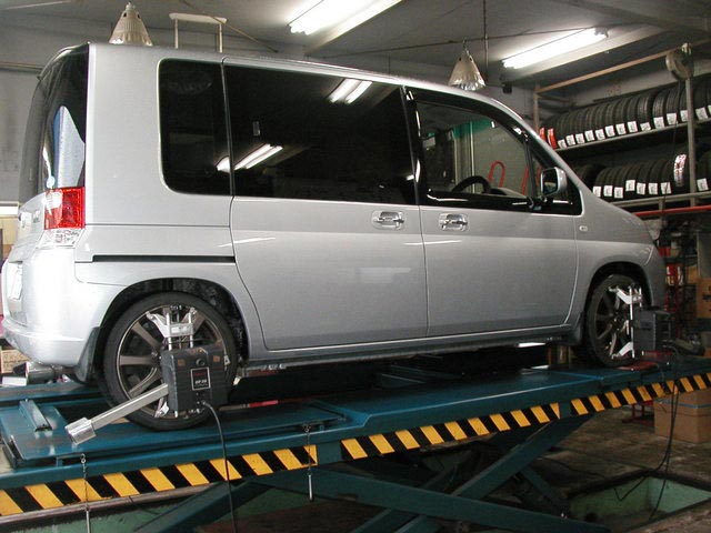 2013年6月13日 ツイート ディーラー様からの御依頼によりホンダ モビリオ(GB1)のアライメント測定&調整作業を行いました。この車の標準アライメント調整箇所はフロントのトーのみの調整となります。いつも御利用ありがとうございます。またの御利用をお待ちしております。 Prev Next