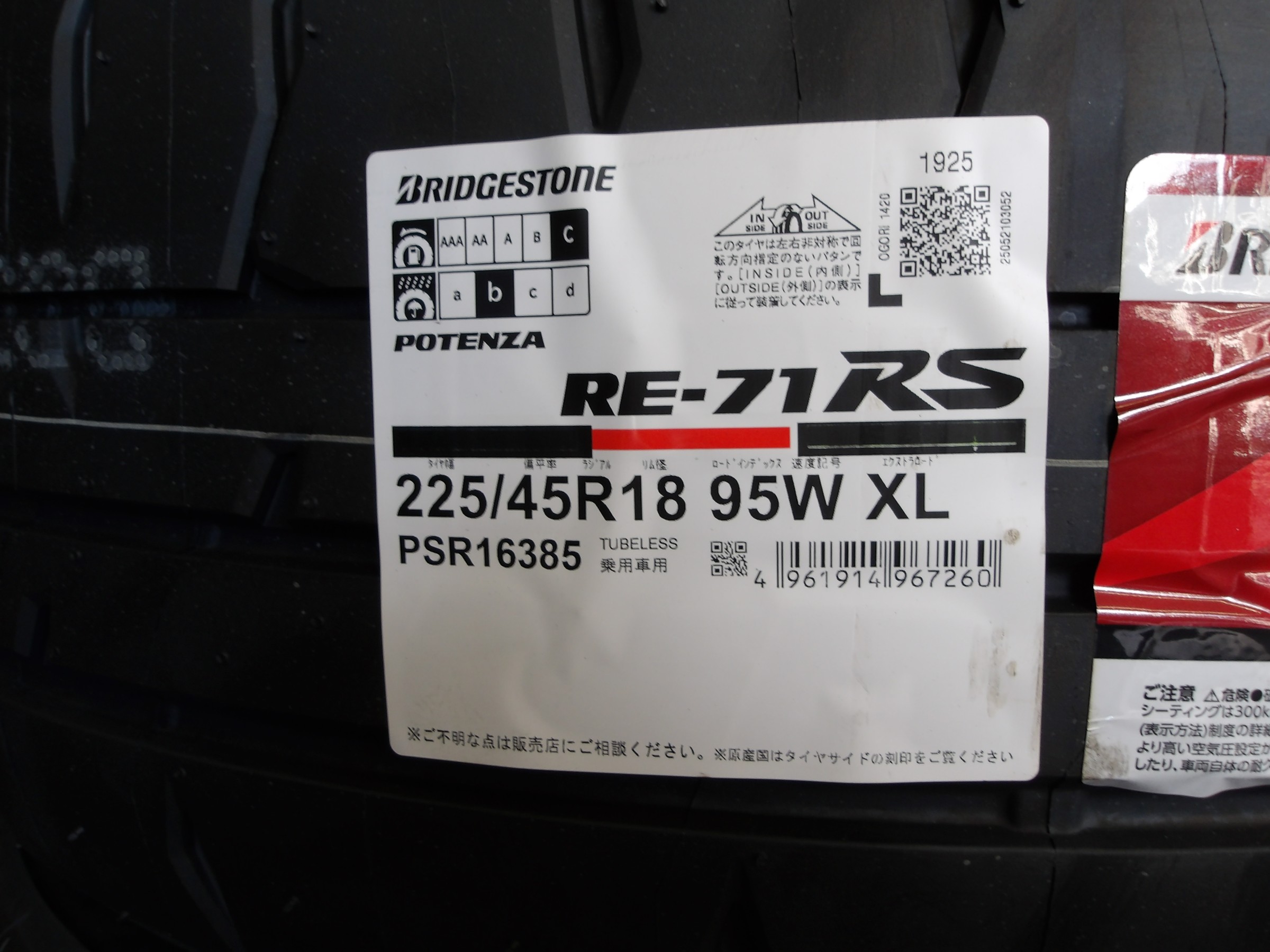 「ポテンザ RE-71RS」を装着致しました。