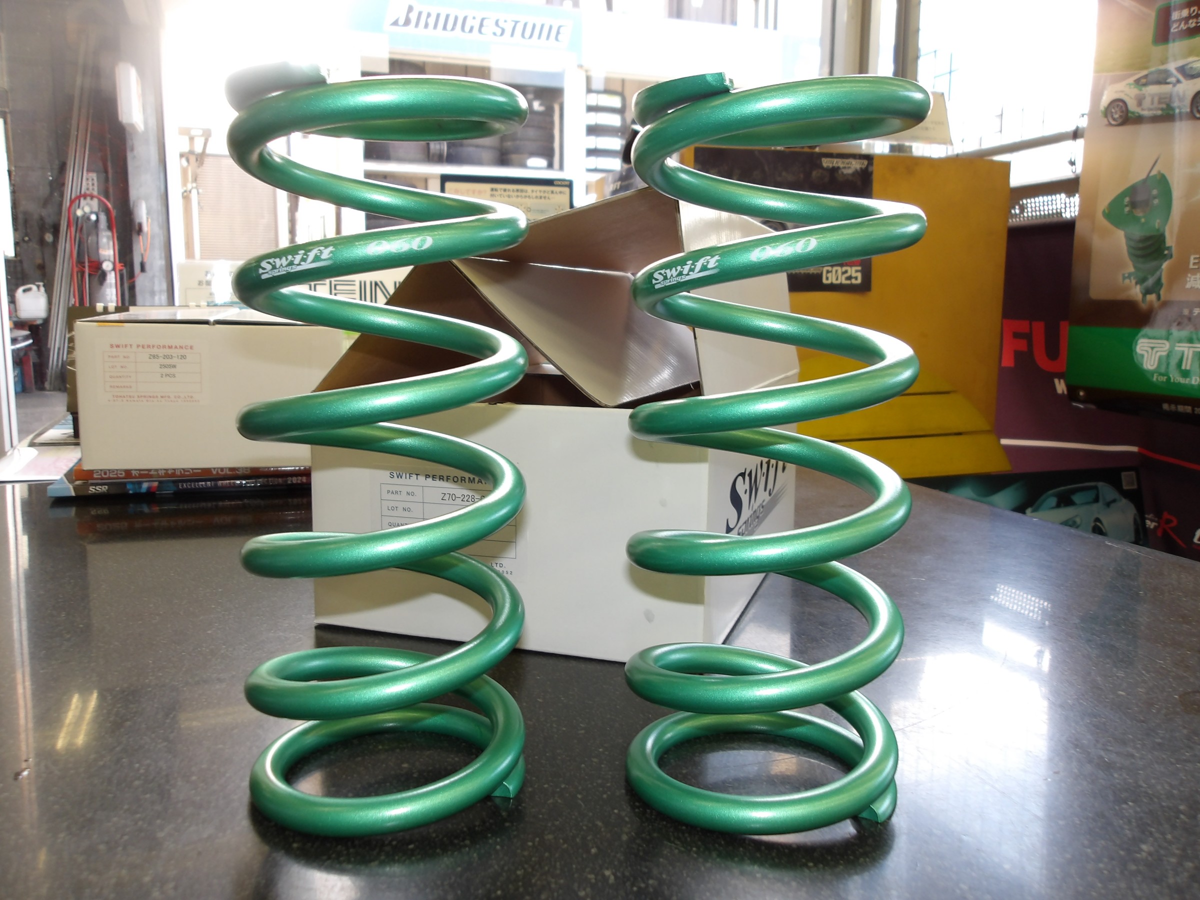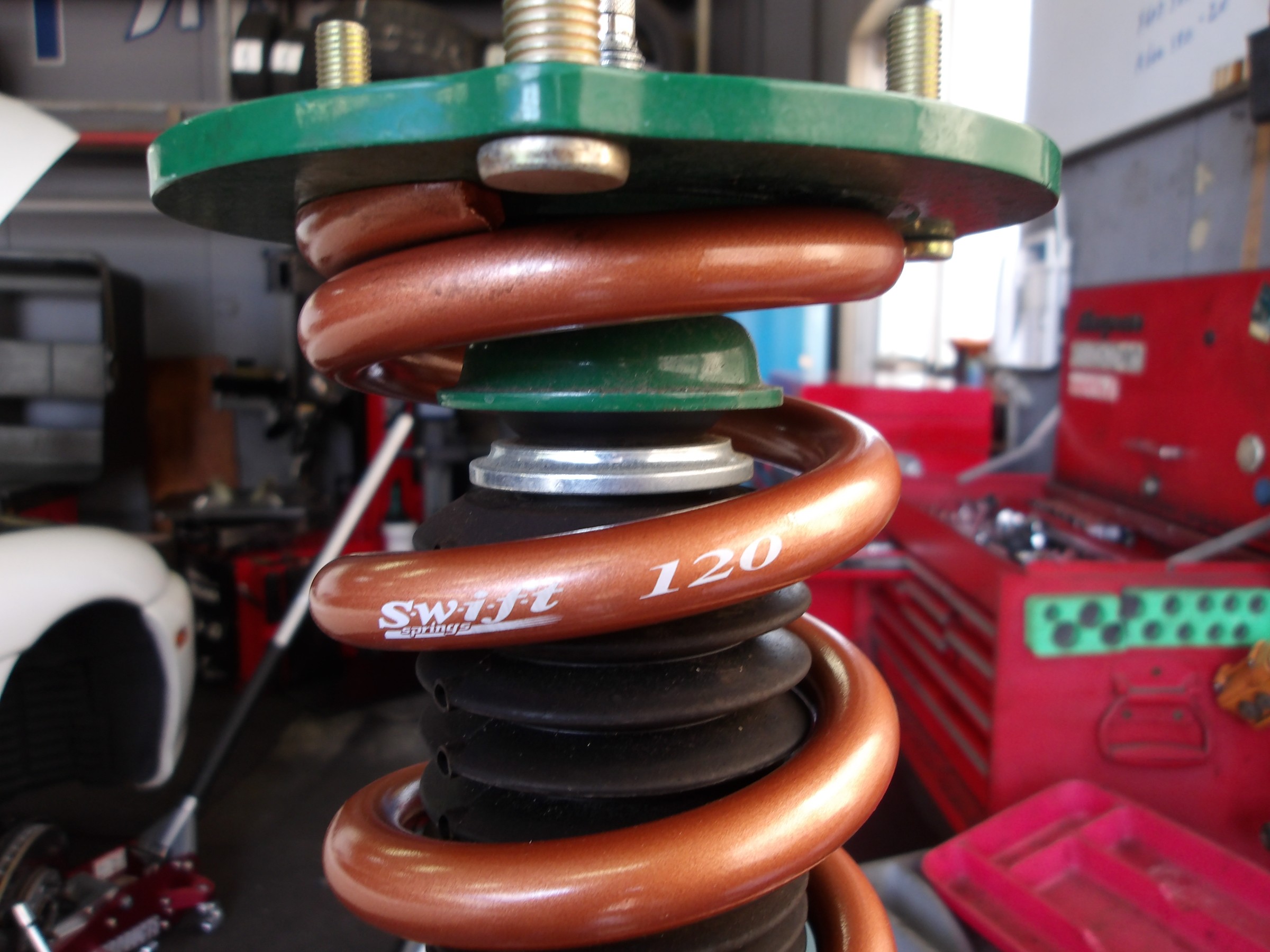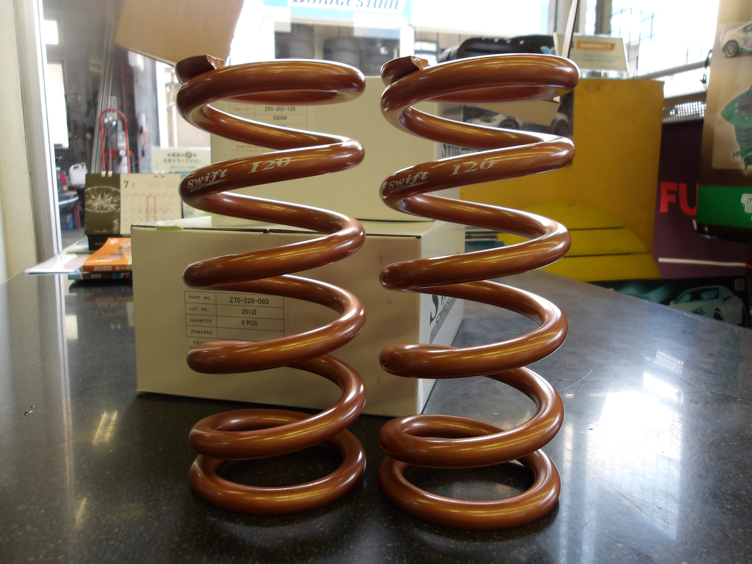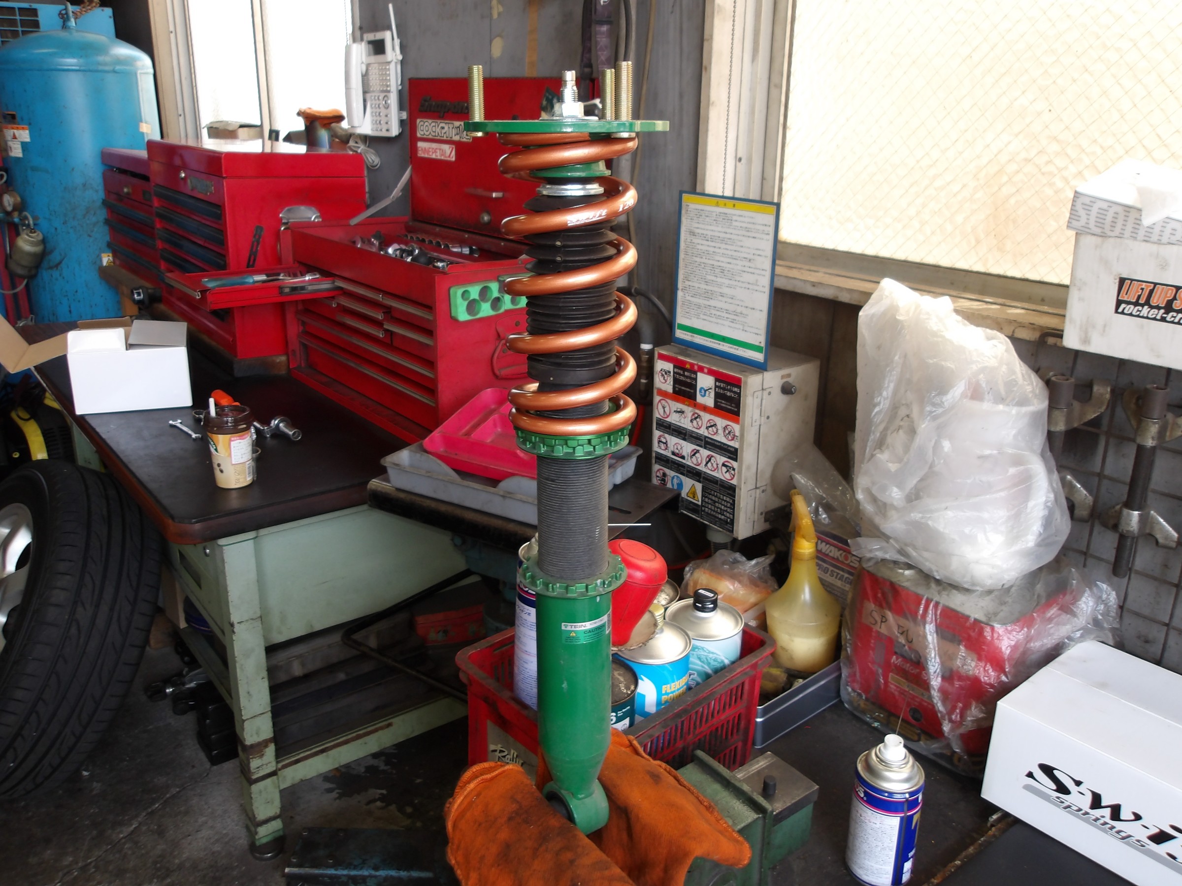 スイフト製のスプリングへと交換作業を行いました。