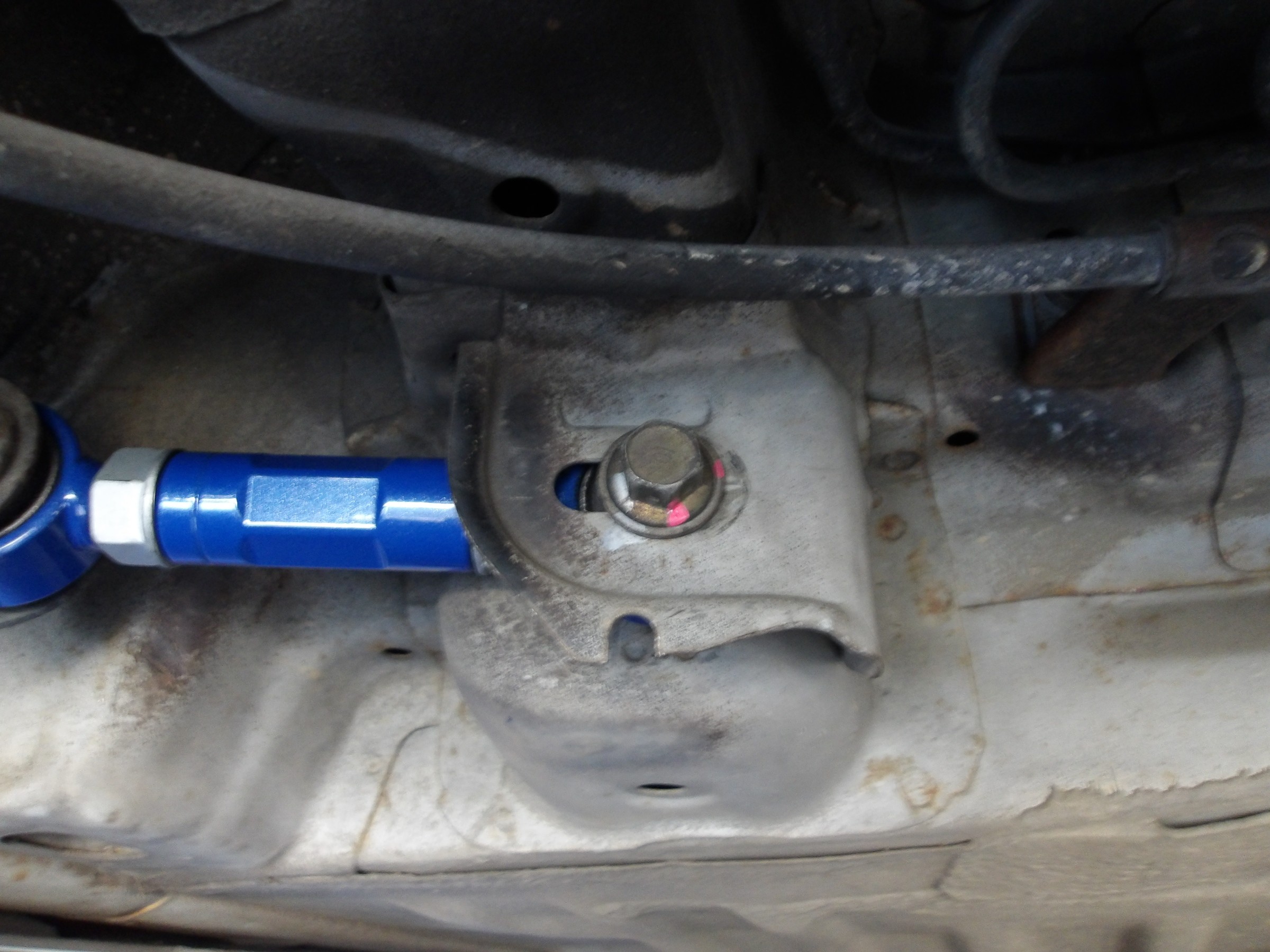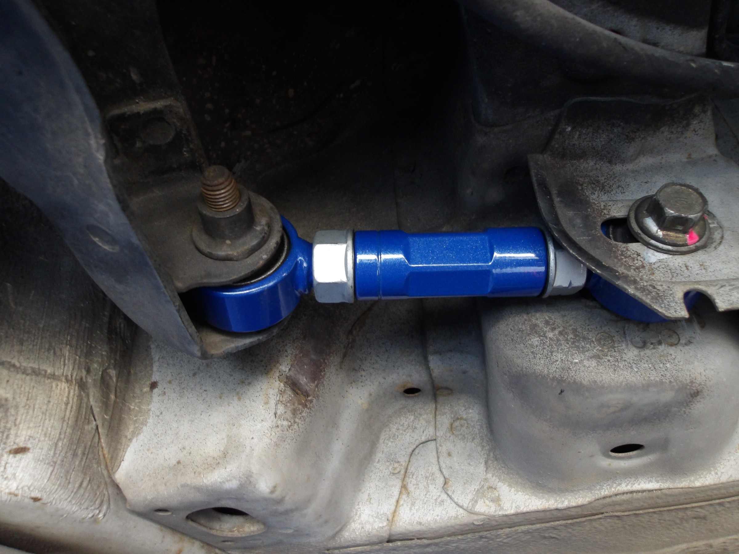 この車両のリヤのアッパーアームが調整式に変更されていたため