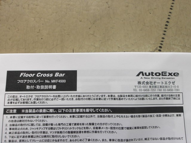 同じくオートエグゼ製の「フロアクロスバー」を