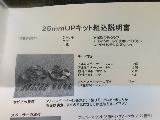 リフトアップキット(F:25mm・R:20mm厚)を前後に装着致しました。