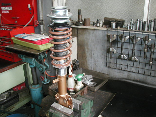 フロント車高調のスプリング交換作業を行いました。