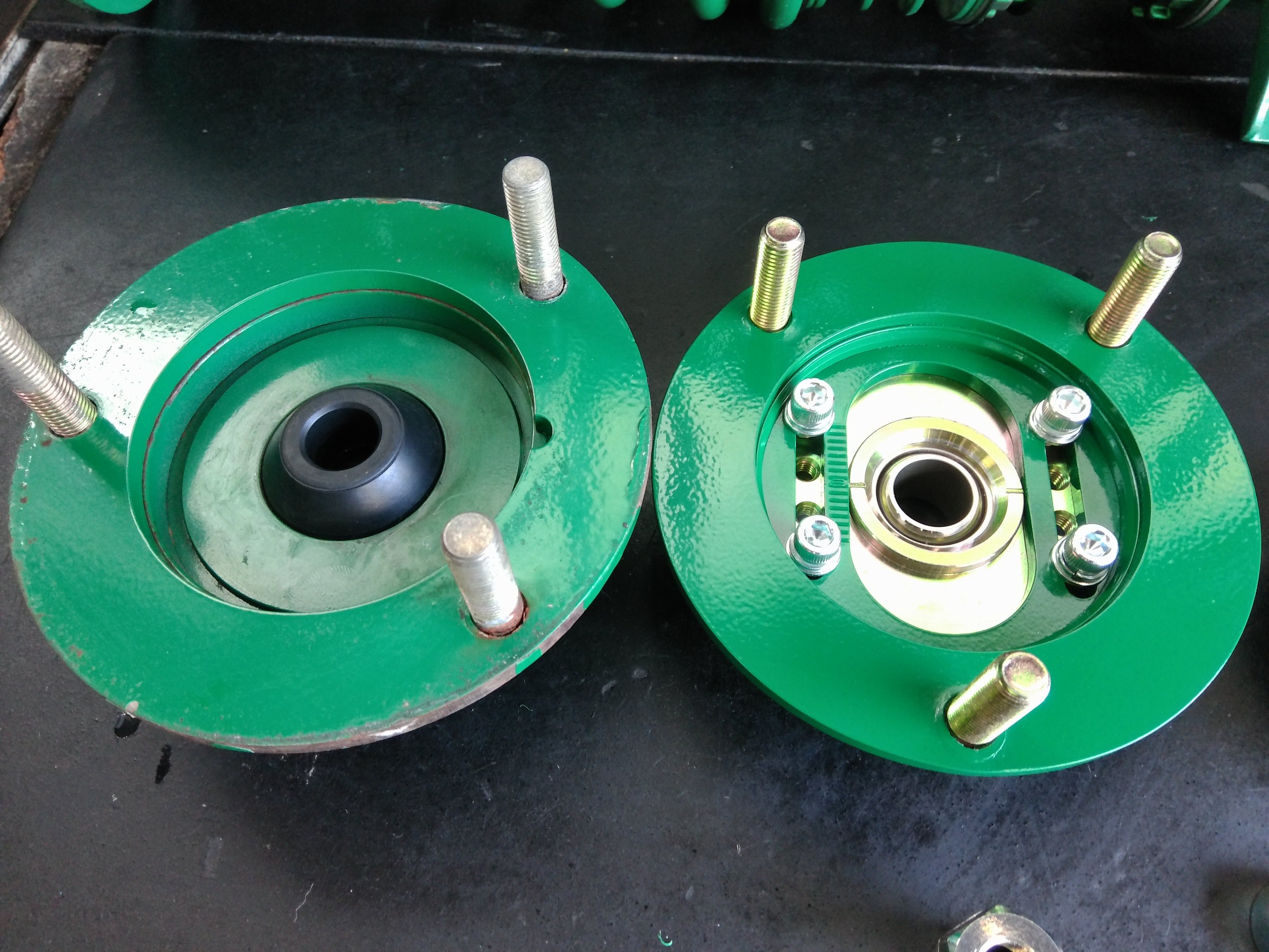 調整式のピロアッパーマウントへと変更致しました。