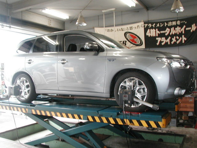 2014年8月29日 ツイート 新規で御利用して頂きますカーディーラー様からの御依頼により三菱アウトランダー(GG2W:PHEV)のアライメント測定&調整作業を行いました。この車の標準アライメント調整箇所は前後のトーとリヤキャンバーが調整できます。いつも御利用ありがとうございます。またの御利用をお待ちしております。 Prev Next