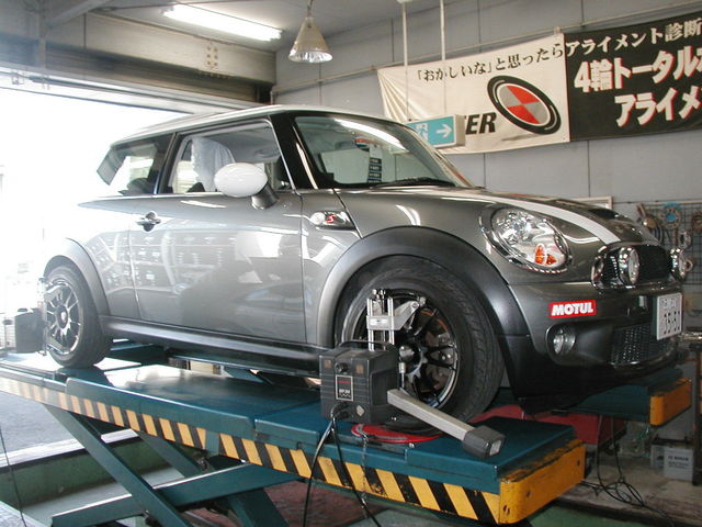 2014年10月17日 ツイート 自動車板金工場様からの御依頼により、ミニ クーパーSのアライメント測定作業を行いました。各部点検・修理し後日に再度アライメント測定&調整作業を行います。ちなみにこの車の標準アライメント調整箇所はリヤキャンバー&前後のトーの調整となります。いつも御利用ありがとうございます。またの御利用をお待ちしております。 Prev Next