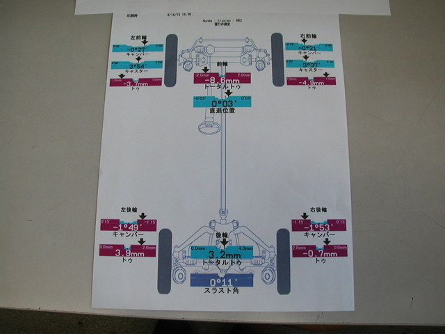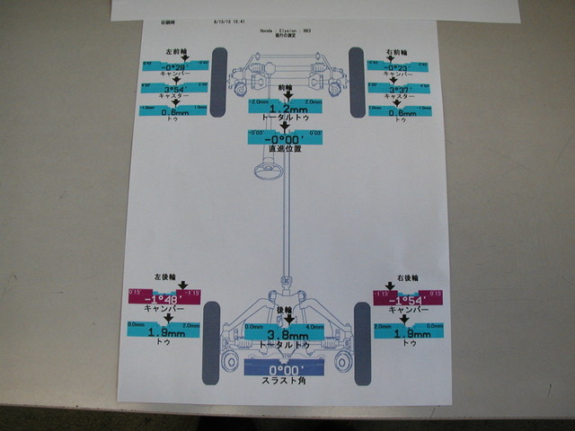 2015年6月15日 ツイート 業者様からの御依頼によりホンダ エリシオン(RR3)のアライメント測定&調整作業を行いました。この車の標準アライメント調整箇所は前後のトーの調整となります。御利用ありがとうございます。今後ともよろしくお願い致します。 Prev Next