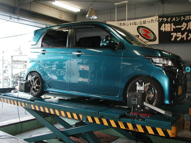 2016年8月6日 ツイート 新規で御来店して頂きましたホンダ N-WGN(JH1:カスタム)のアライメント測定&調整作業を行いました。この車の標準アライメント調整箇所はフロントのトーのみの調整となります。御利用・御来店ありがとうございます。今後ともよろしくお願い致します。 Prev Next