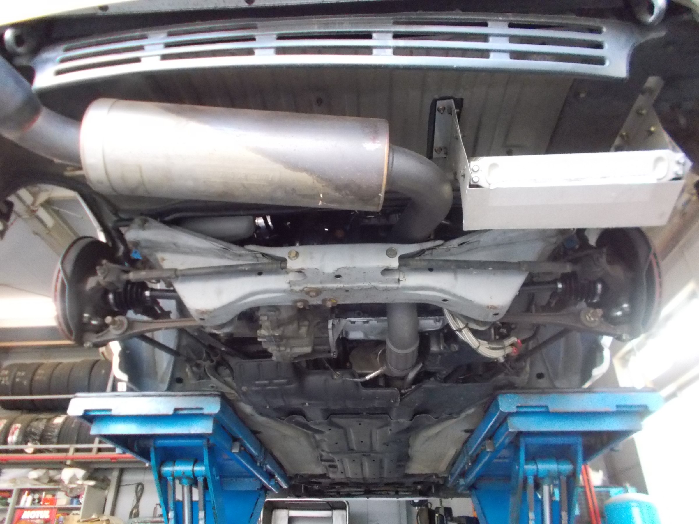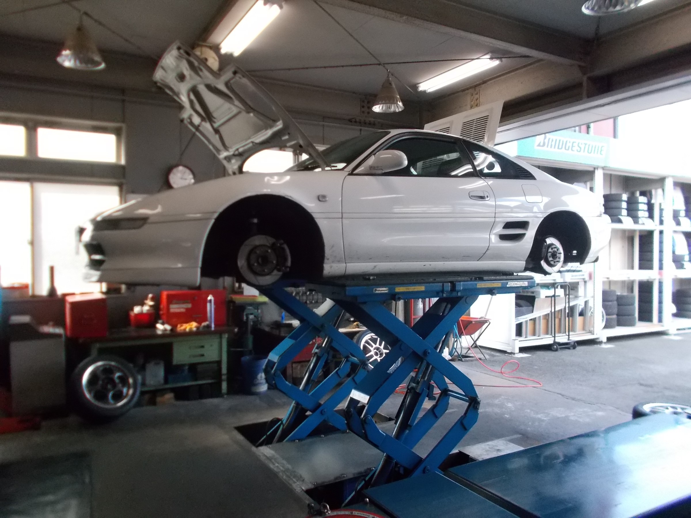 車検整備や下回りの点検、各部の増し締め作業に
