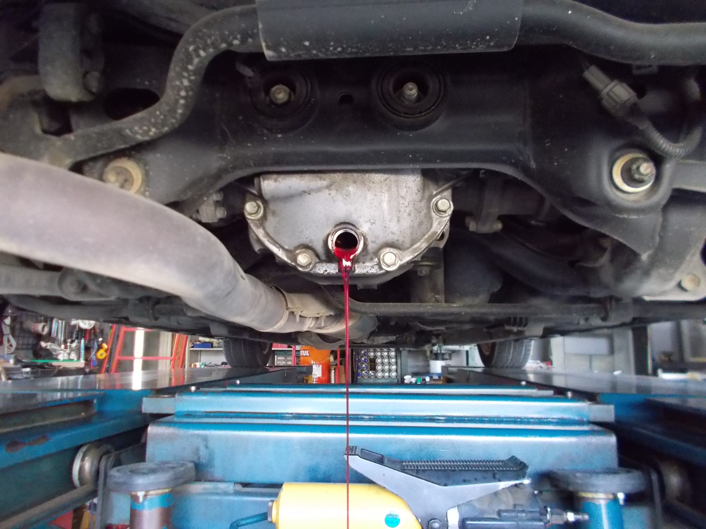 エンジンオイルとリヤデフオイルの交換作業を行いました。