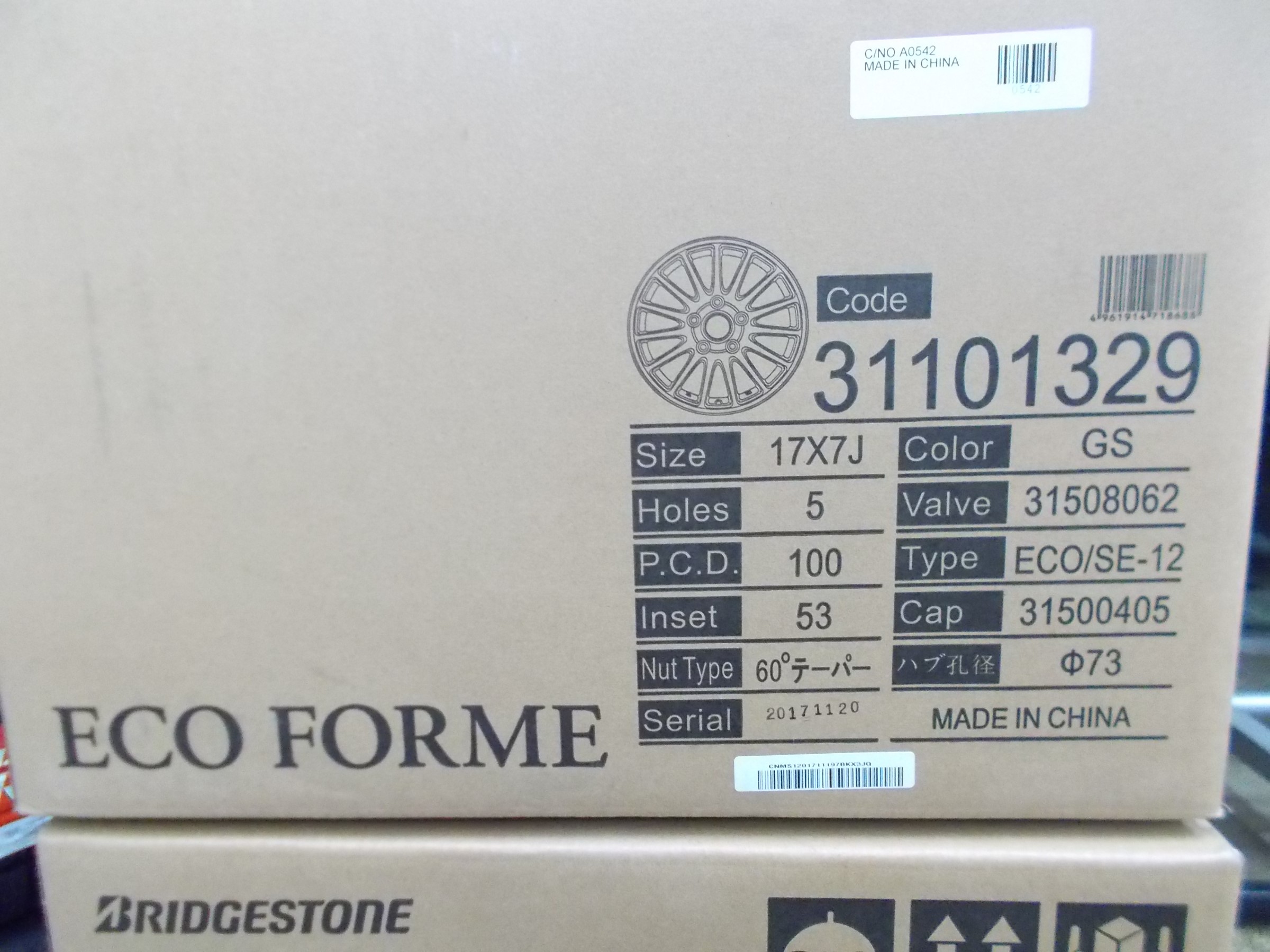 同じくブリヂストンタイヤのアルミホイール「エコフォルム SE-12」に再度組んで
