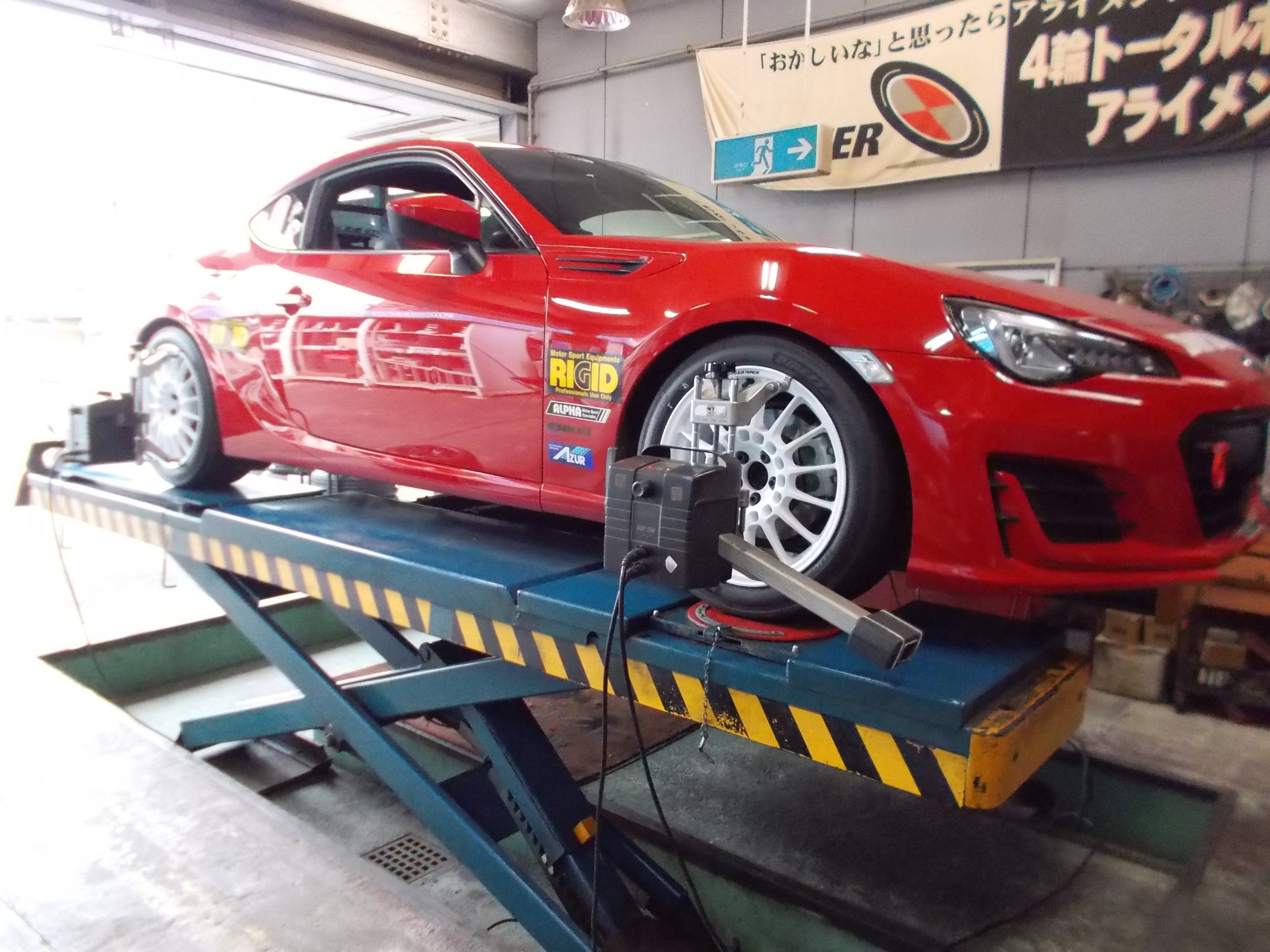 2019年1月15日 ツイート ジムカーナ競技に参戦しております スバル BRZ(ZC6)の アライメント測定&調整作業を行いました。 この車の標準アライメント調整箇所は 前後のトーの調整となります。 いつも御利用・御来店ありがとうございます。 またのお越しをお待ちしております。 Prev Next