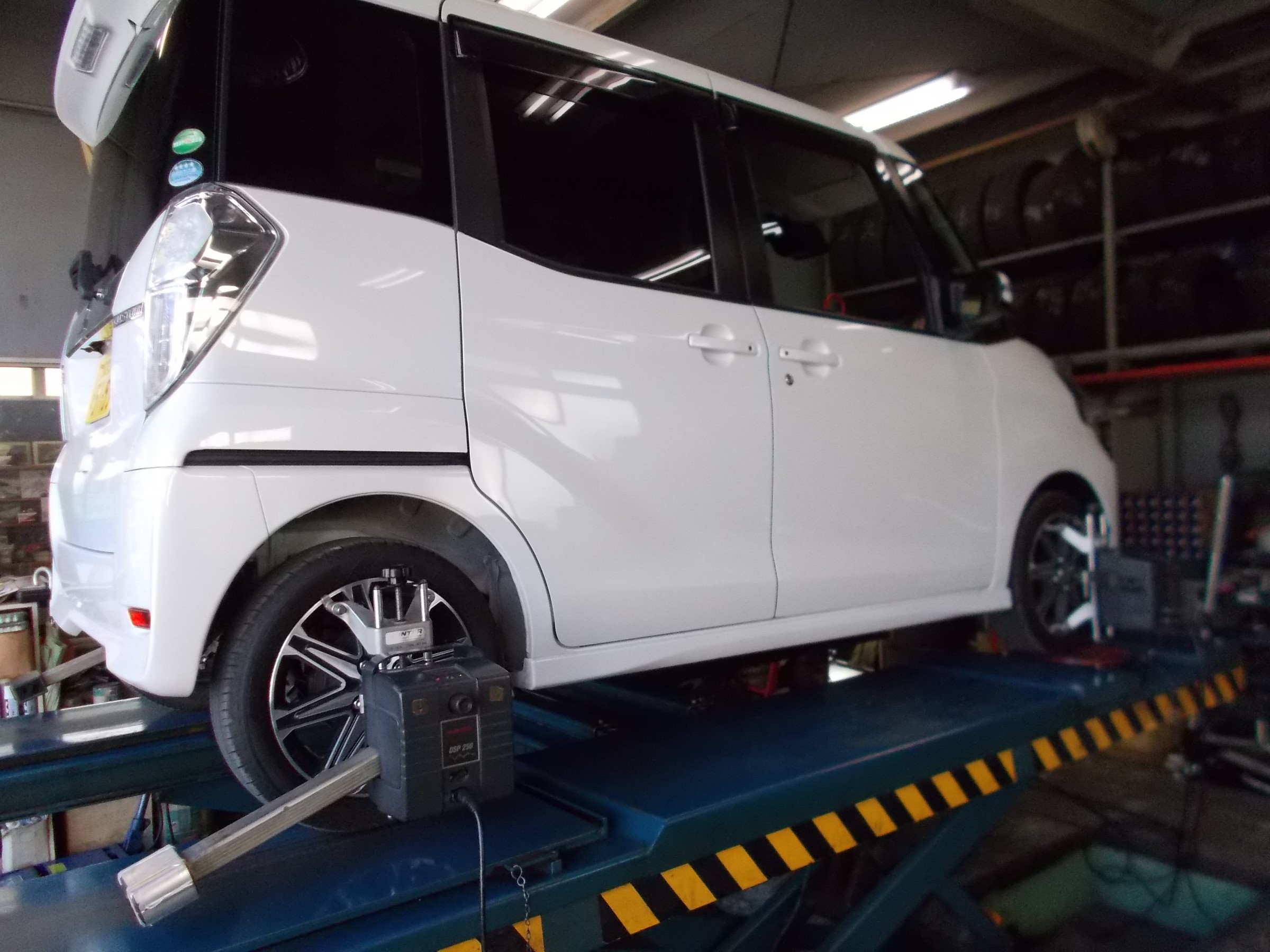 2019年2月12日 ツイート 自動車鈑金工場様からの御依頼により 三菱 eKスペース(B11A:カスタム)の アライメント測定&調整作業を行いました。 この車の標準アライメント調整箇所は フロントのトーのみの調整となります。 いつも御利用ありがとうございます。 またのご利用をお待ちしております。 Prev Next