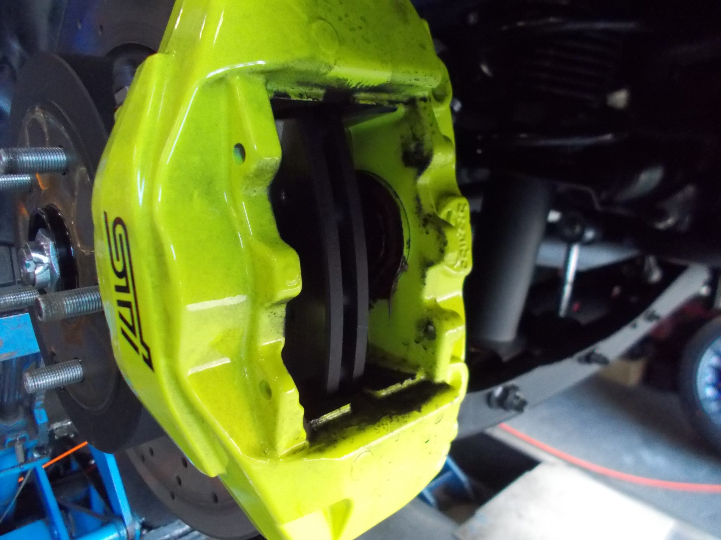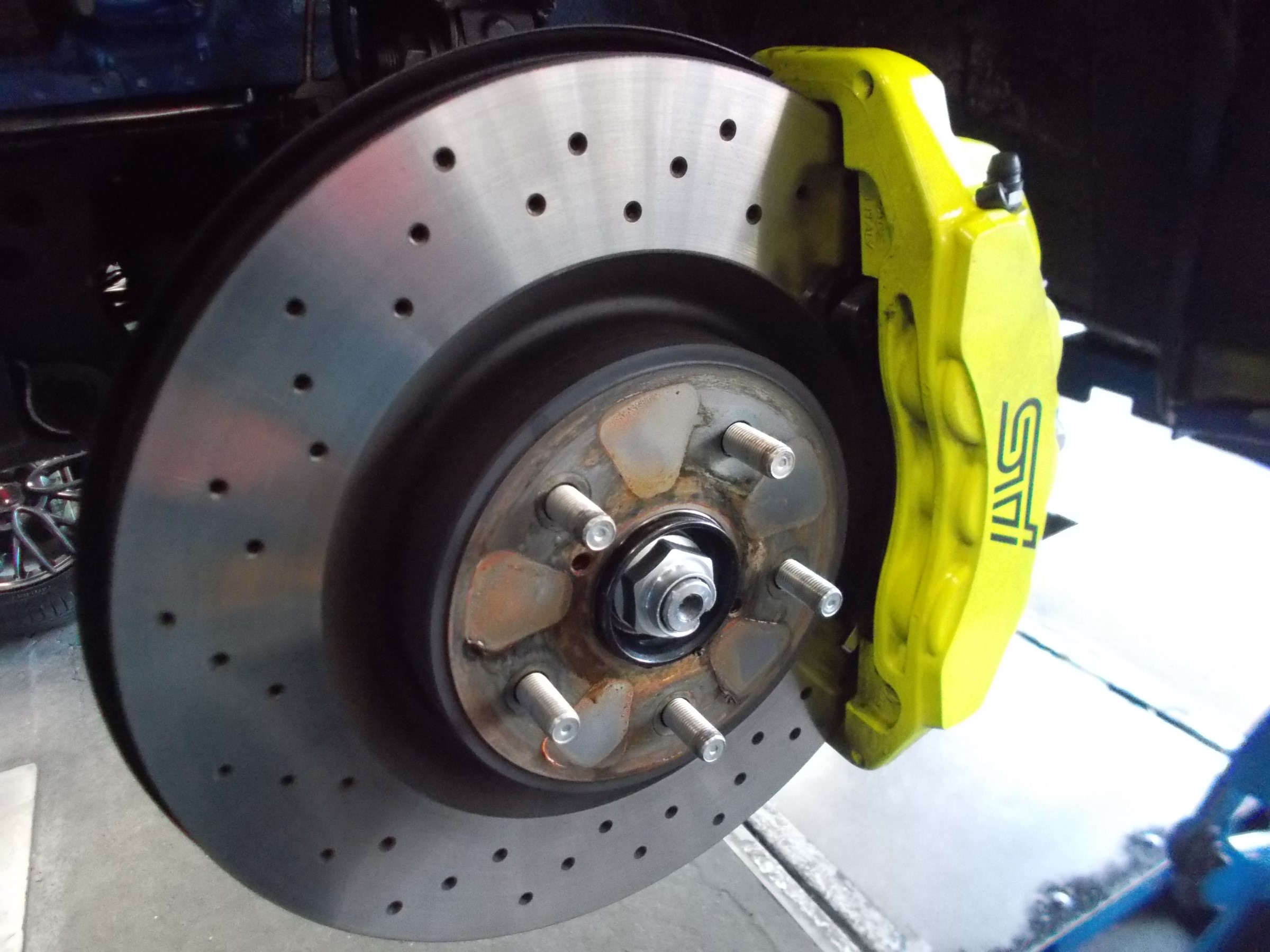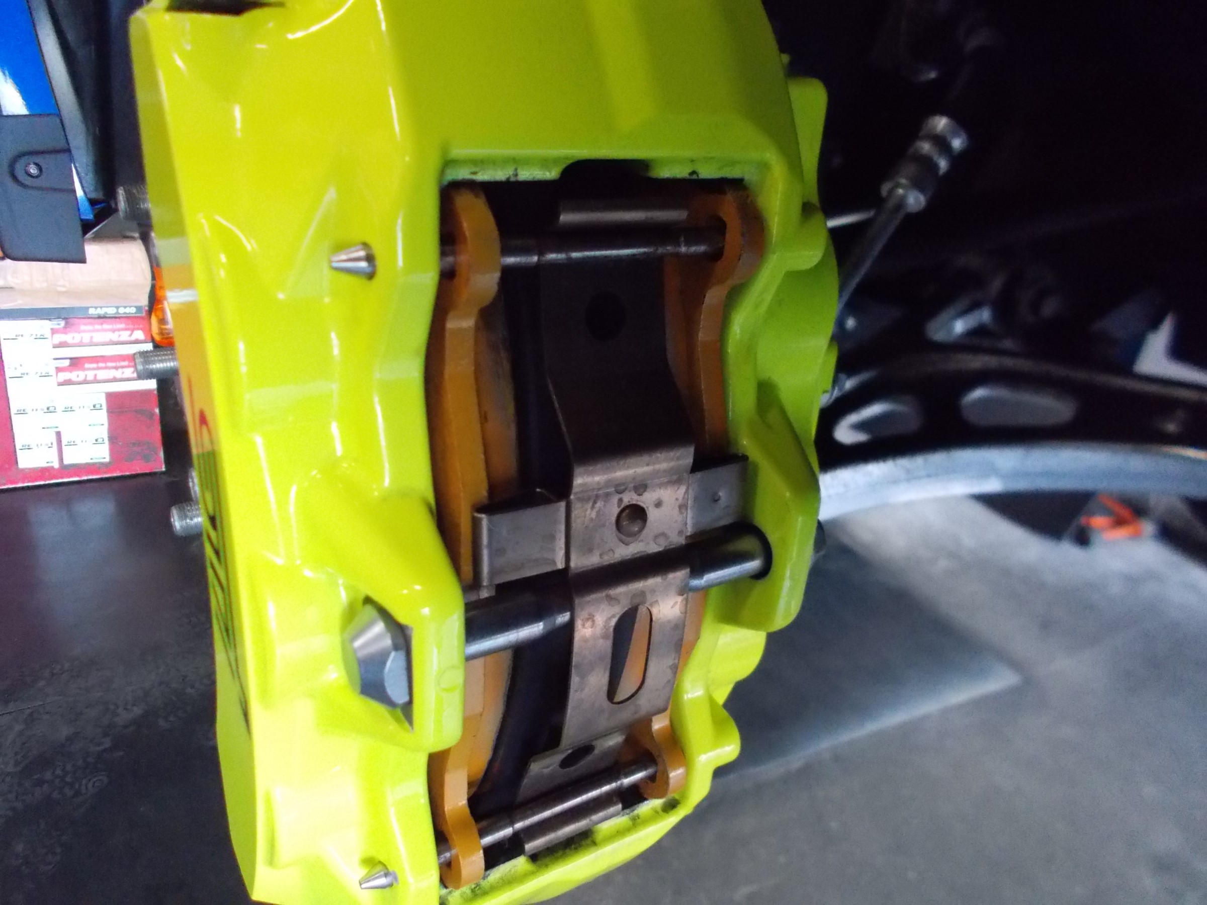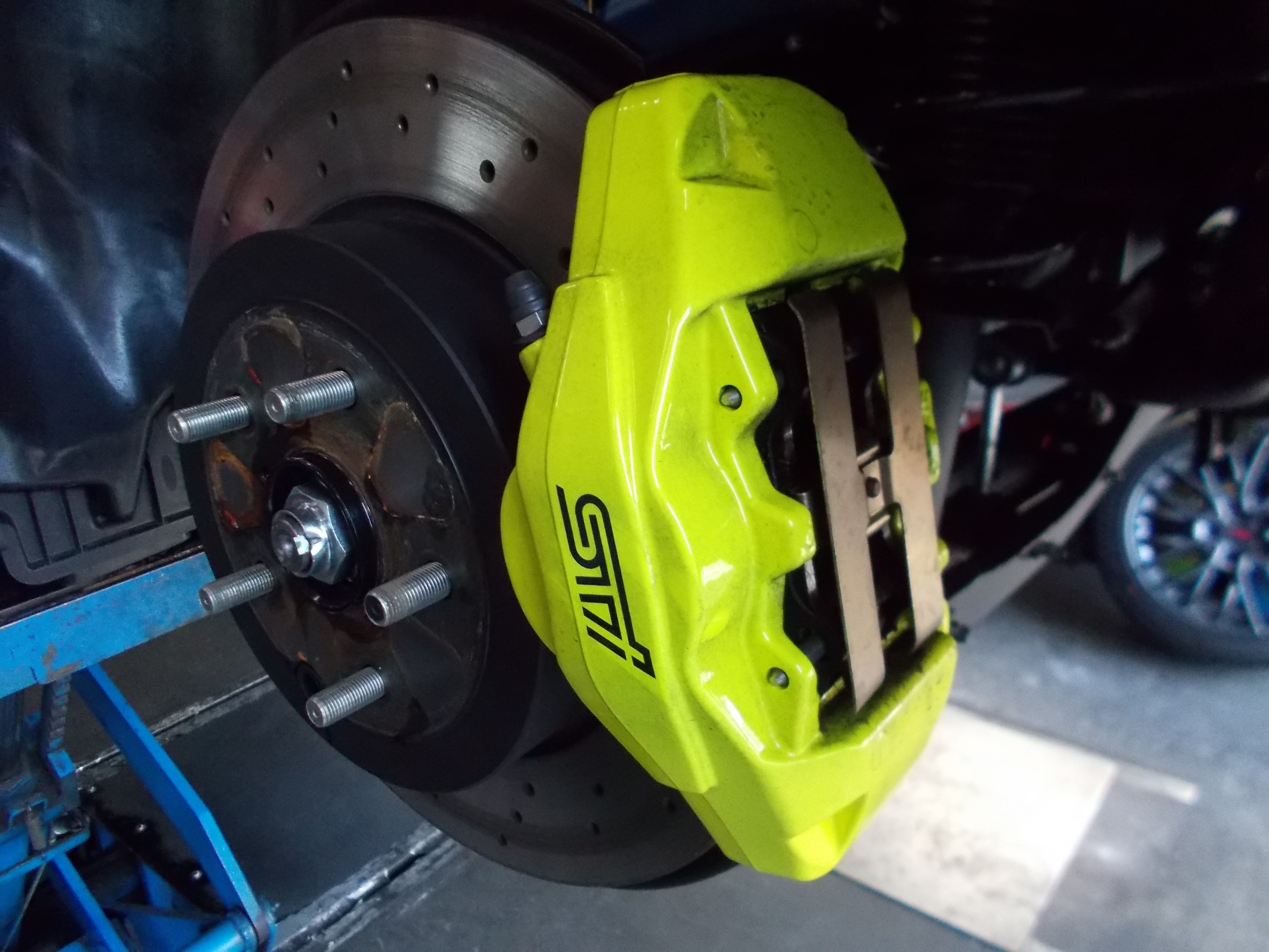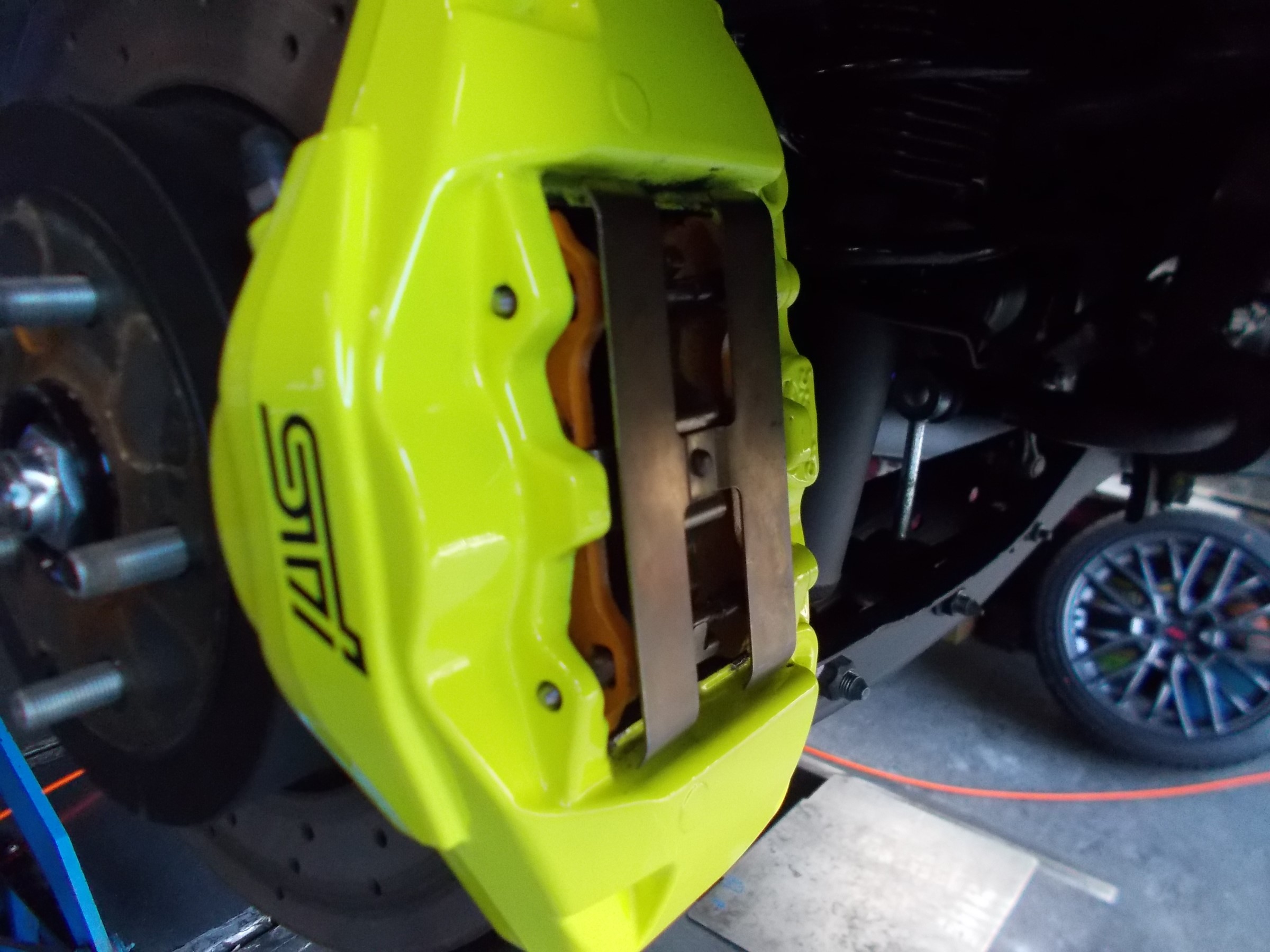 (特にブレンボ製のブレーキキャリパー装着車など)は