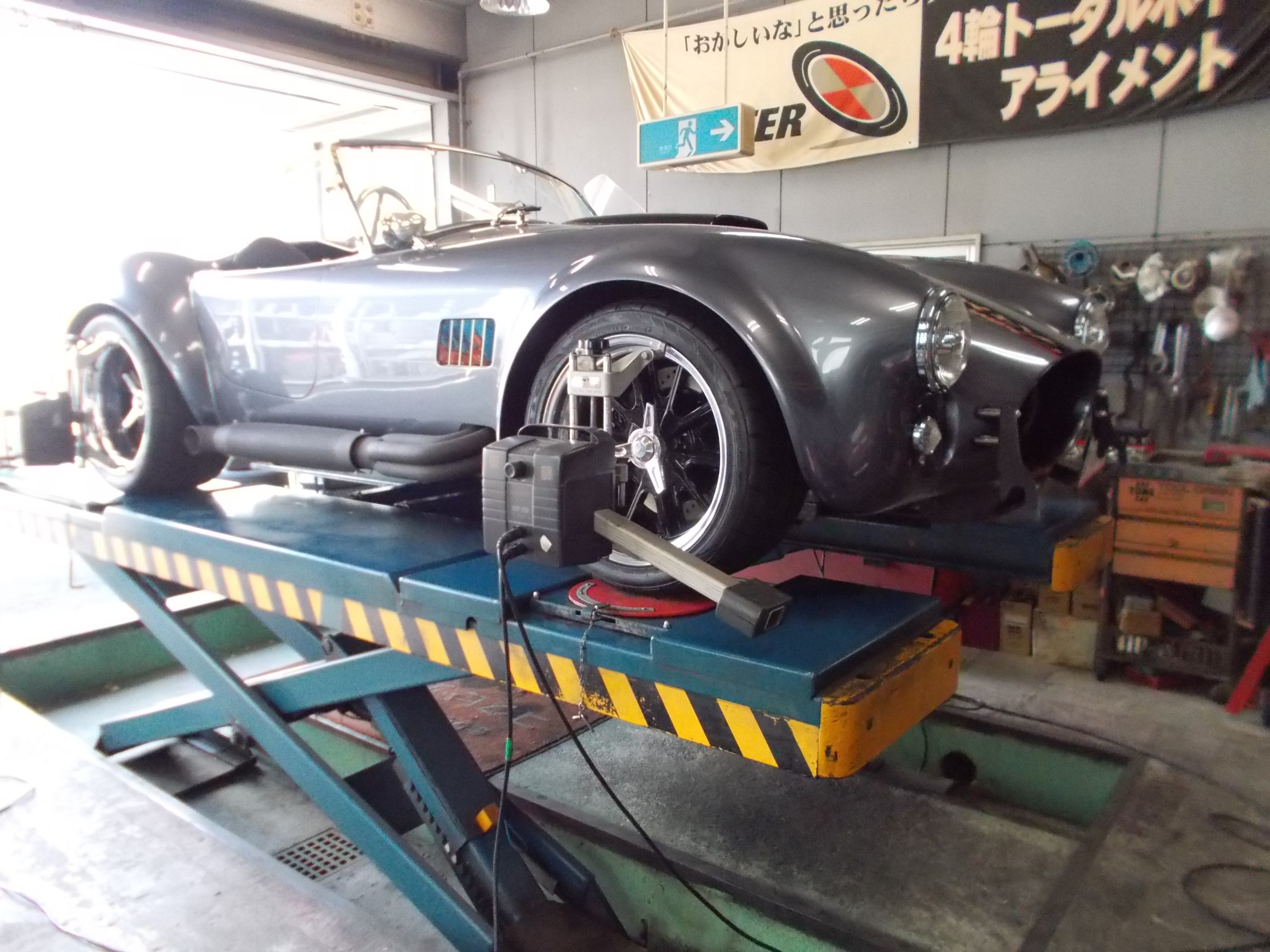 2019年5月16日 ツイート 業者様からの御依頼により フォード コブラの アライメント測定&調整作業を行いました。 この車の標準アライメント調整箇所は フロントのキャスターと前後のキャンバー、 前後のトーとフル調整の車輌となります。 いつも御利用ありがとうございます。 またのご利用をお待ちしております。 Prev Next