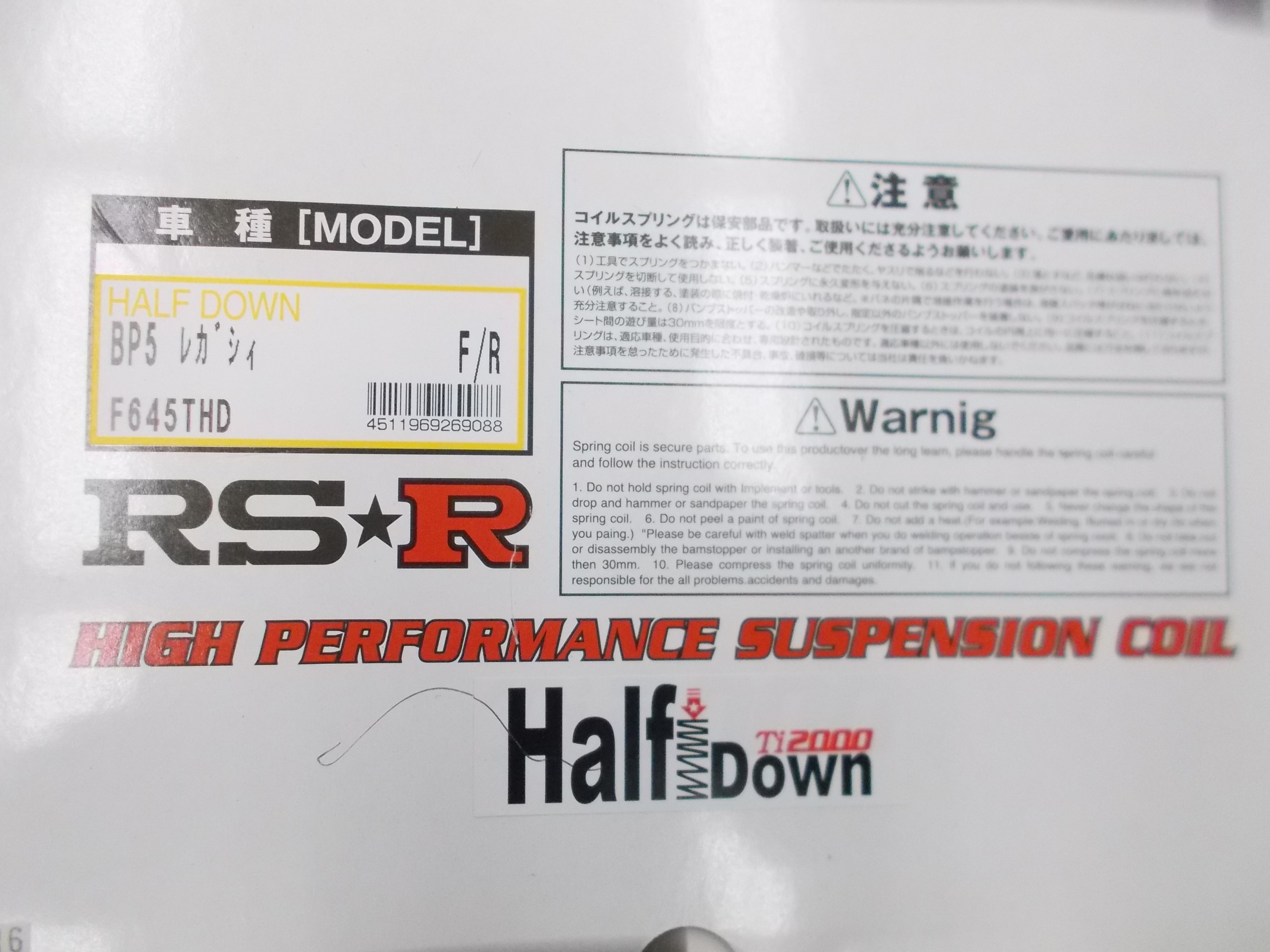 RS-R製のローダウンスプリング「Ti2000:ハーフダウン」を組んで
