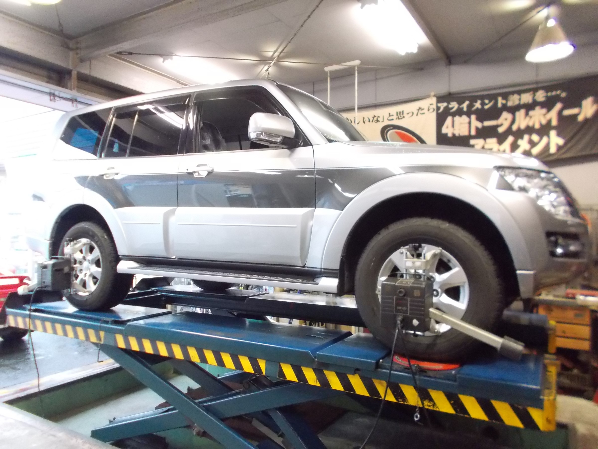 2020年6月13日 ツイート カーディーラー様からの御依頼により 三菱 パジェロ(V93W)の アライメント測定&調整作業を行いました。 この車の標準アライメント調整箇所は フロントのキャスターと前後のキャンバー、 前後のトーの調整とフルに調整出来る車両となっております。 いつも御利用ありがとうございます。 またのご利用をお待ちしております。 Prev Next
