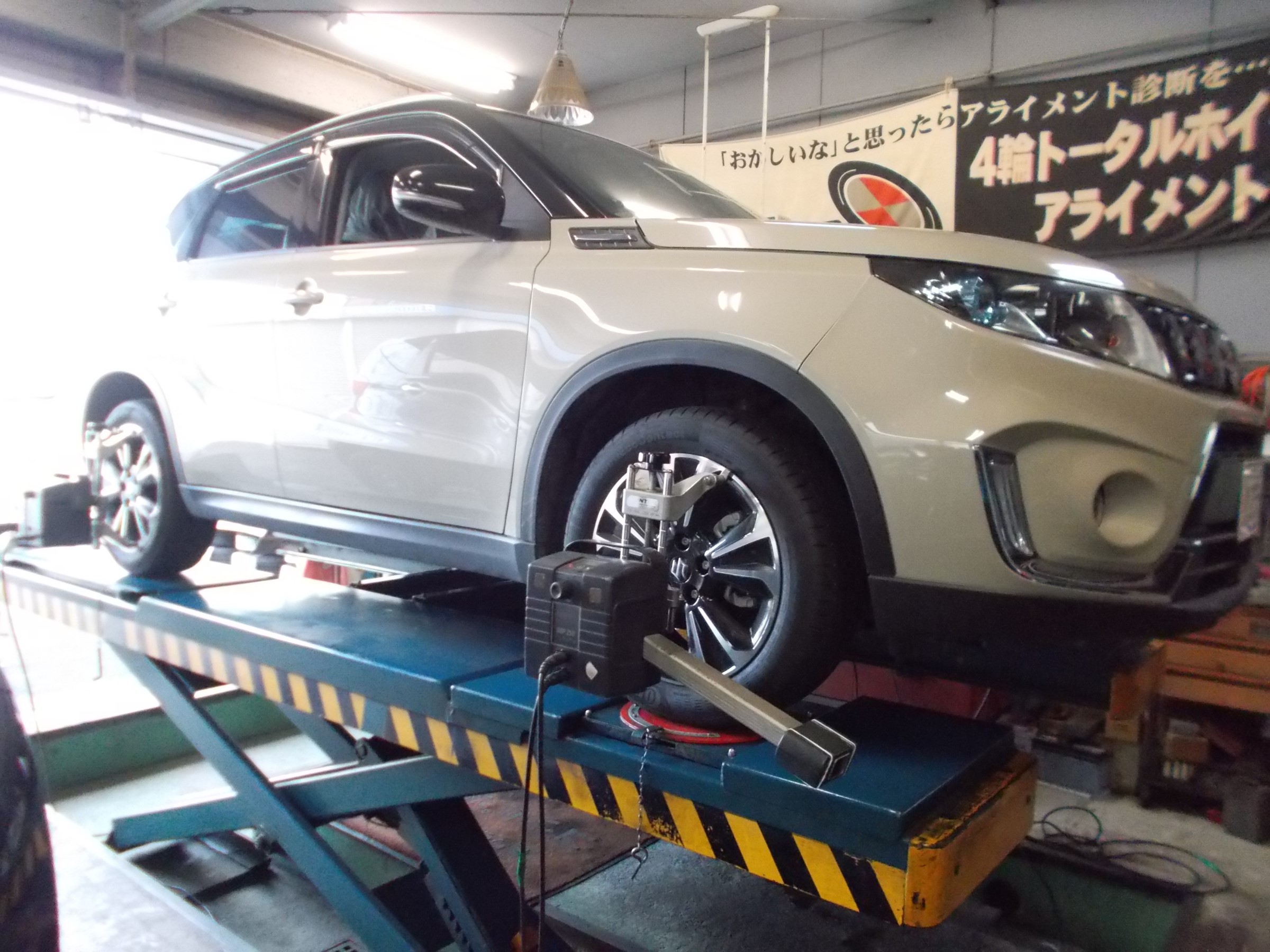2020年9月7日 ツイート 自動車鈑金工場様からの御依頼により スズキ エスクード(4BA-YEA1S)の アライメント測定&調整作業を行いました。 この車の標準アライメント調整箇所は フロントのトーのみの調整となります。 いつも御利用ありがとうございます。 またの御利用をお待ちしております。 Prev Next