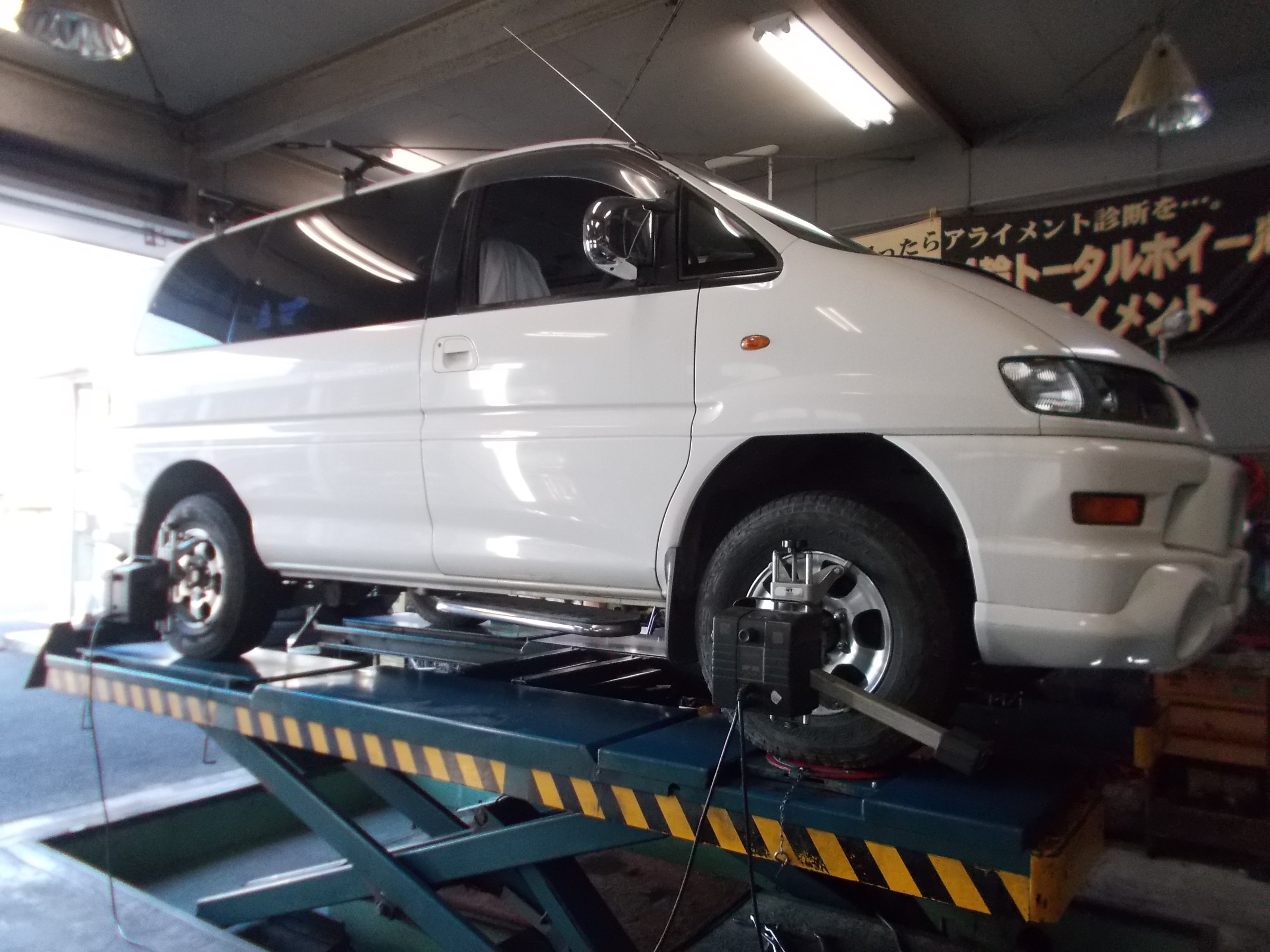 2020年10月29日 ツイート 自動車鈑金工場様からの御依頼により 三菱 デリカ(PD6W)の アライメント測定&調整作業を行いました。 この車の標準アライメント調整箇所は フロントのキャスターとフロントのキャンバー、 フロントのトーの調整となります。 いつも御利用ありがとうございます。 またの御利用をお待ちしております。 Prev Next